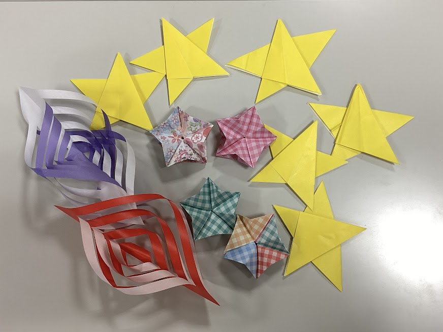 先日、館内装飾ボランティアの皆様と七夕の飾りを作りました☆