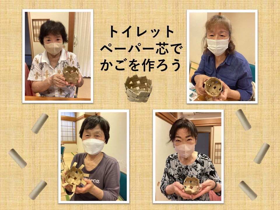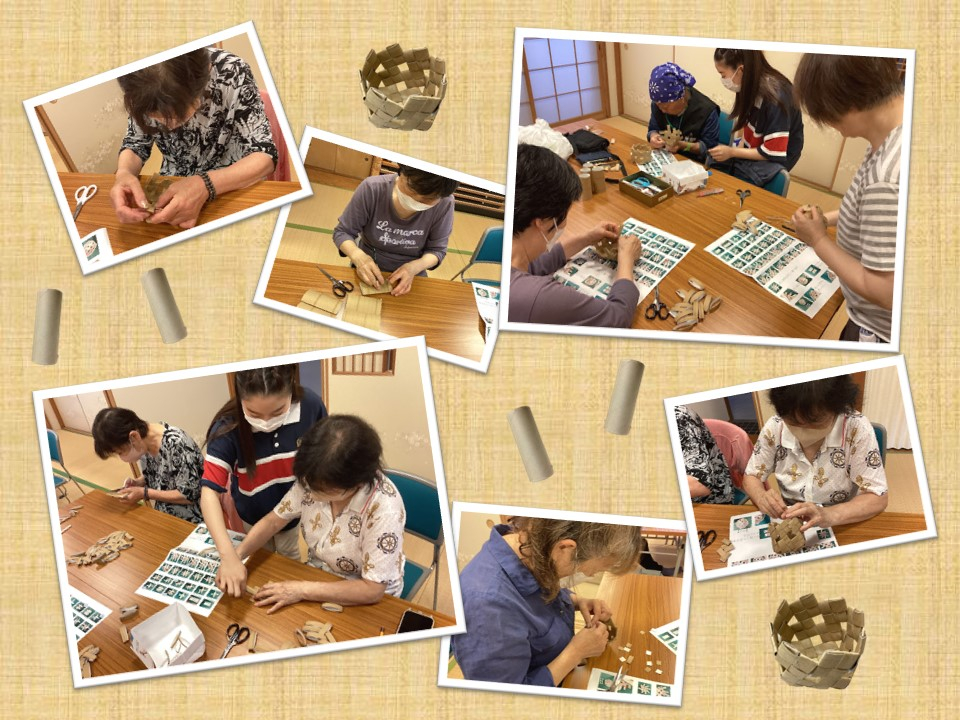 『トイレットペーパー芯でかごを作ろう」のタイトル通り、トイレットペーパー芯を使いかごを作りました。