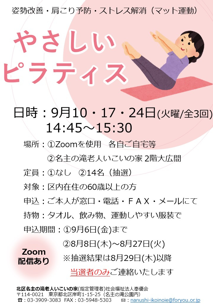 【申込受付開始します】9月の『やさしいピラティス』