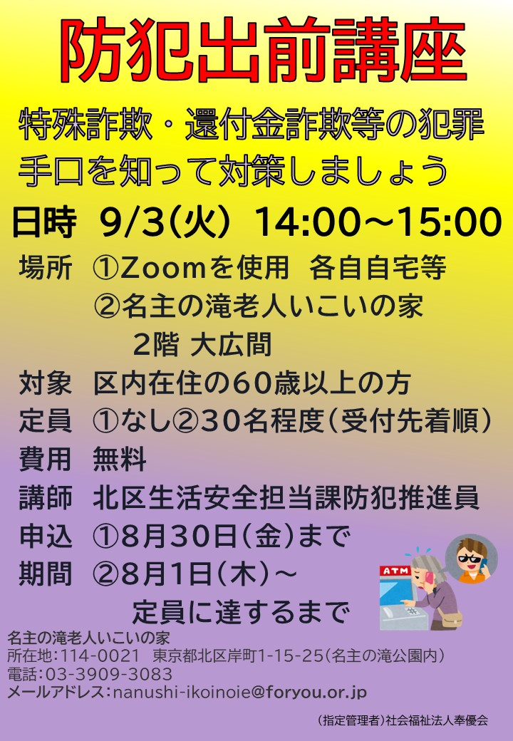 8月1日から【防犯出前講座】のお申込みが開始致します。