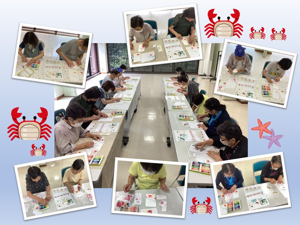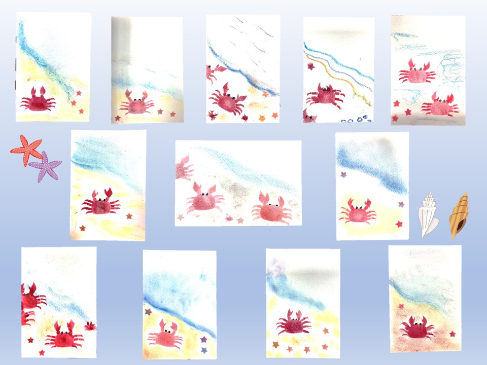 型紙を組み合わせて小さなカニを描かれていた方もいらっしゃいました!