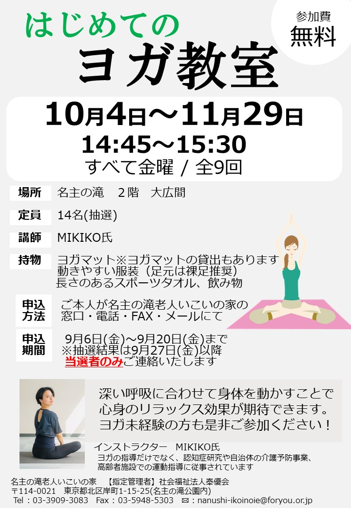 【はじめてのヨガ教室】本日よりお申込み開始致します