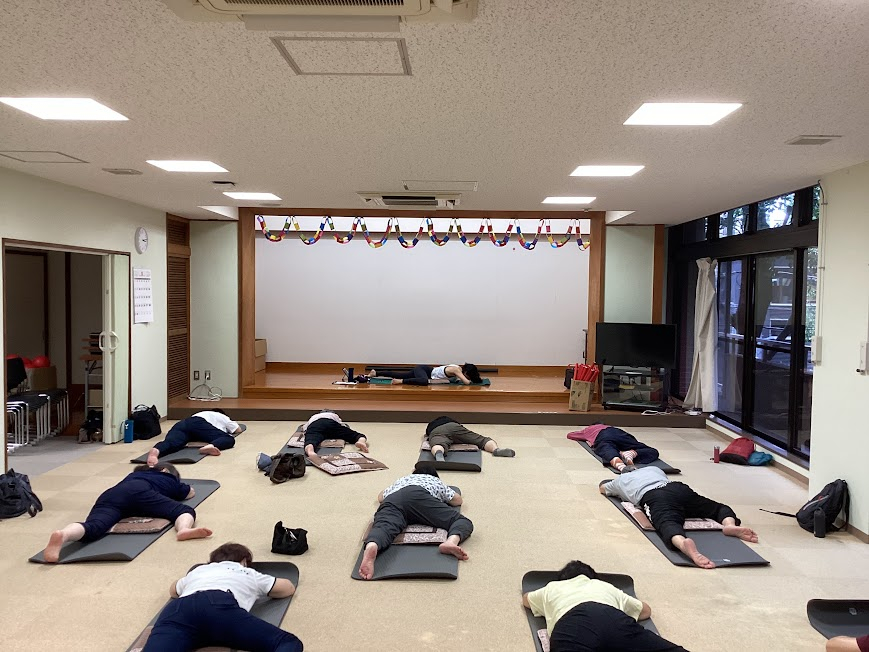 あぐら・うつ伏せ・仰向けの様々な姿勢を取り入れていました。