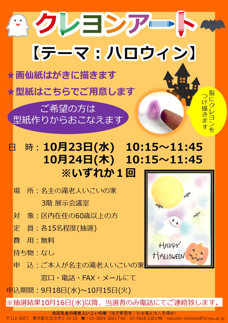 10月のクレヨンアート講座募集中です!
