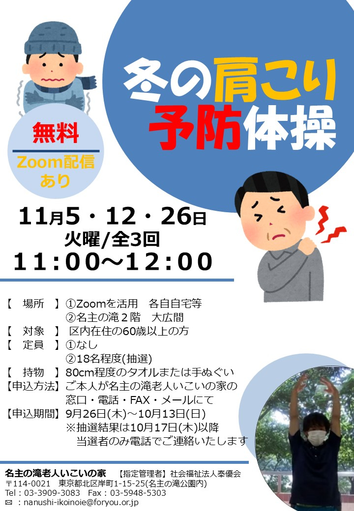 【申込受付開始】11月『冬の肩こり予防体操』