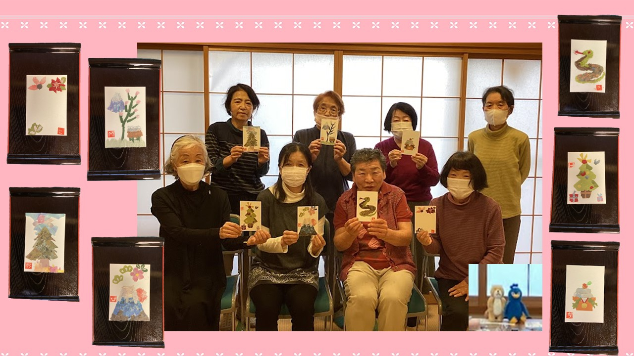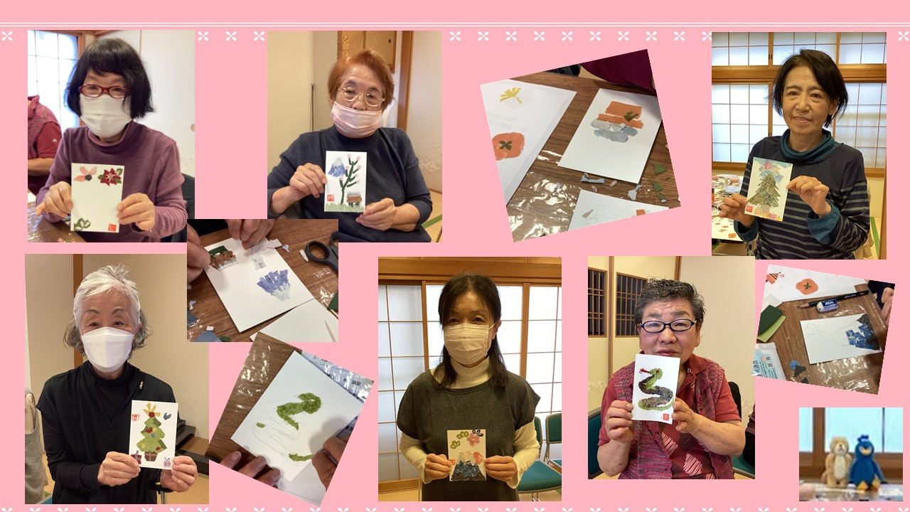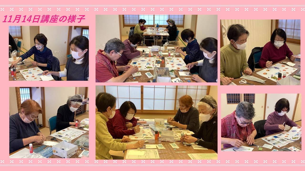 ちぎり絵で作る季節のカード講座の様子です。