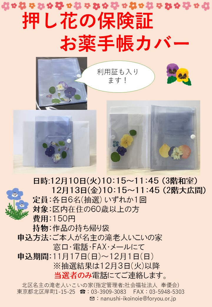 【押し花の保険証・お薬手帳カバー】本日より申込開始致します