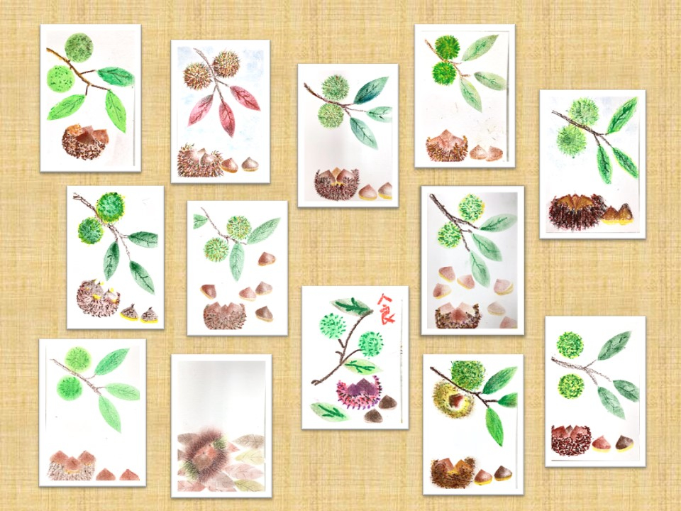 今回のポイントは、栗の艶だしとイガの描き入れでした!