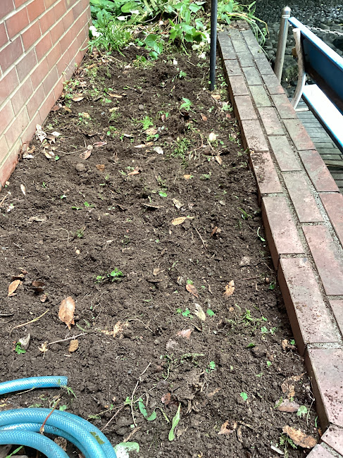 草が繁茂していて、とても「花壇」と言えるスペースではないのですが、