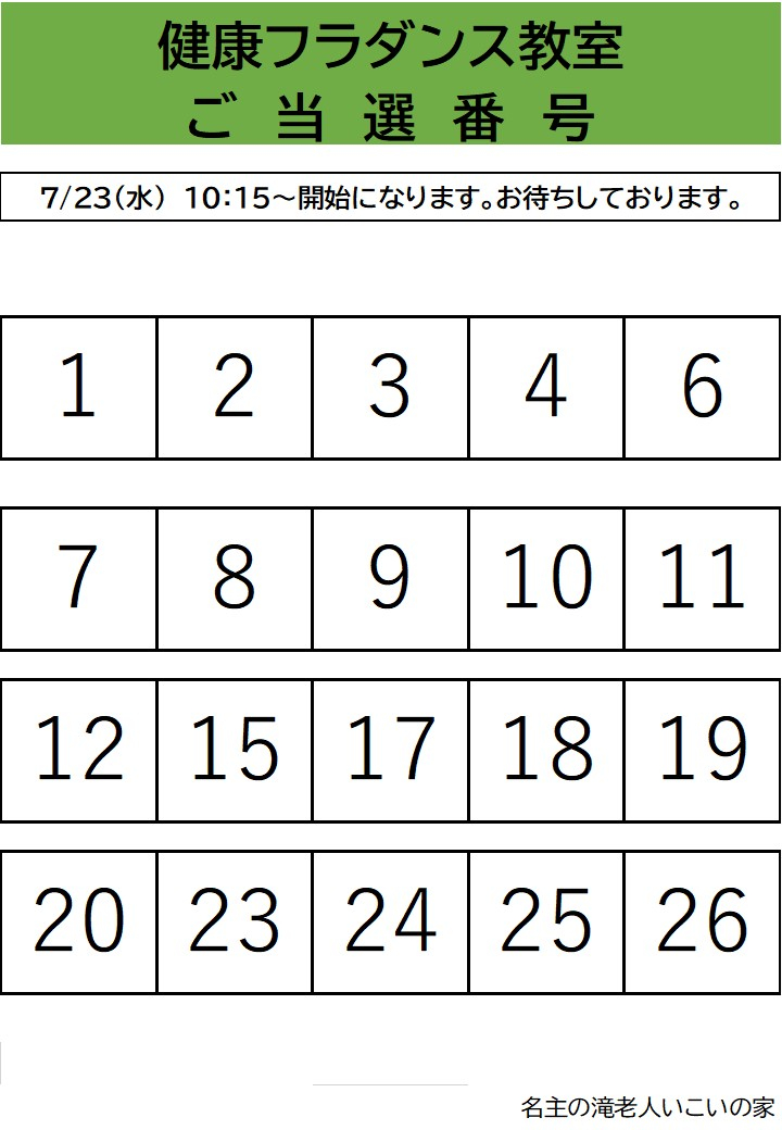 【7月-8月健康フラダンス教室】抽選結果のお知らせ致します。