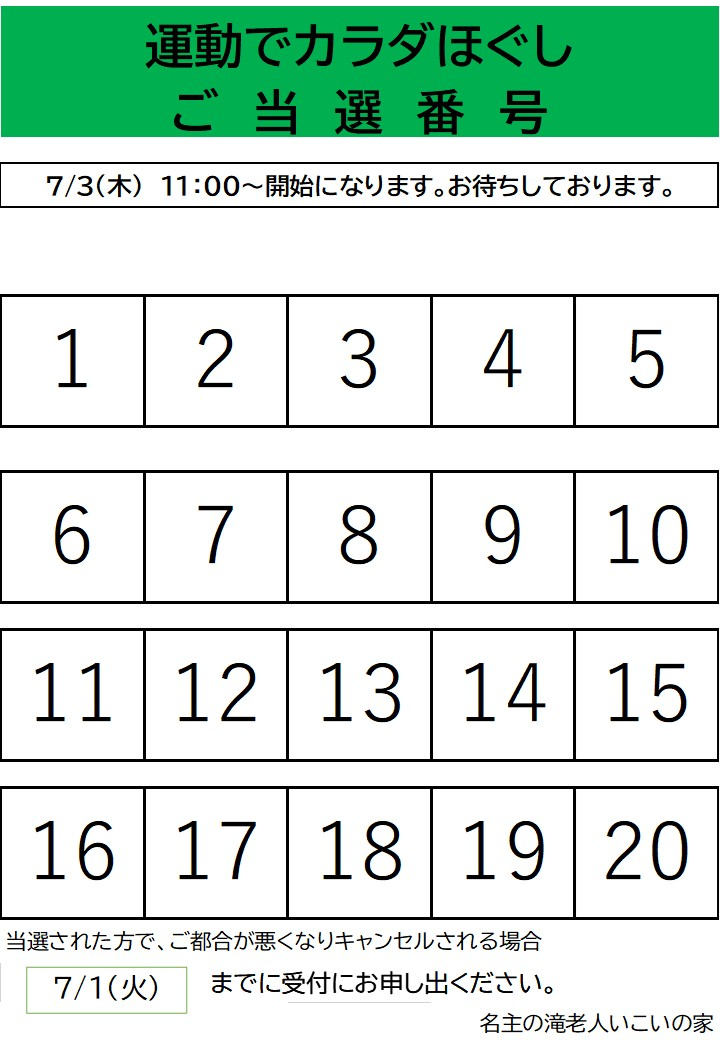 7月開催「運動でカラダほぐし」抽選結果のお知らせ致します。