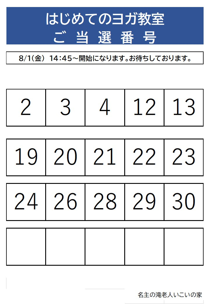 8-9月開催はじめてのヨガ教室の抽選結果を発表させていただきます。