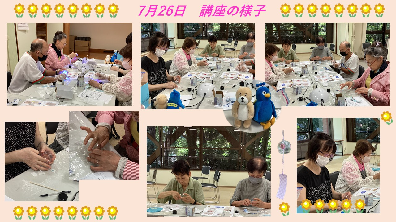 7月26日レジンで作るガラスの風鈴講座の様子です。