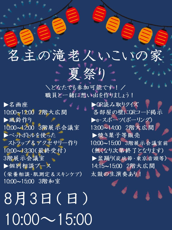 8月3日(日)10時〜15時にて「夏祭り」を開催致します。