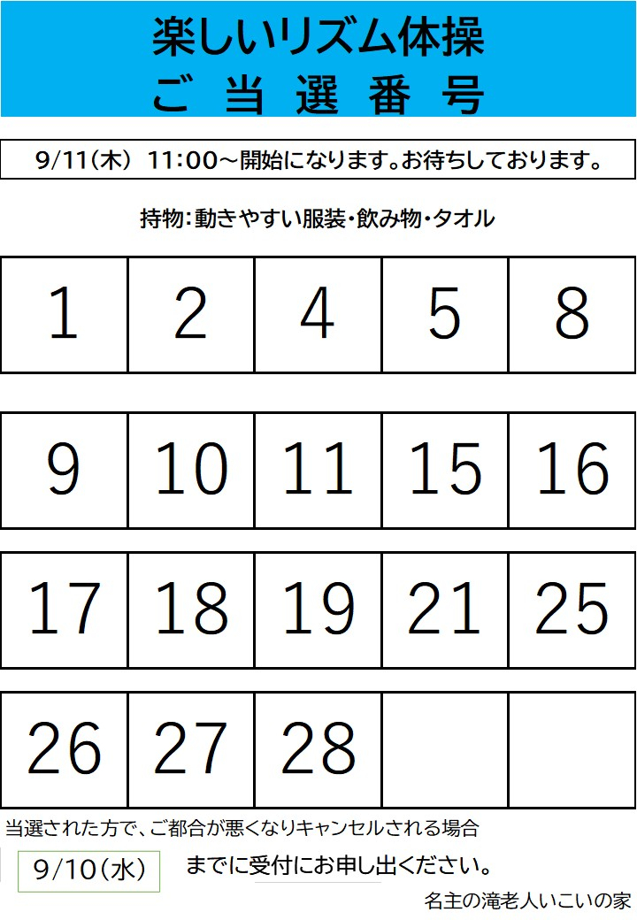 「楽しいリズム体操」抽選結果を発表させていただきます。