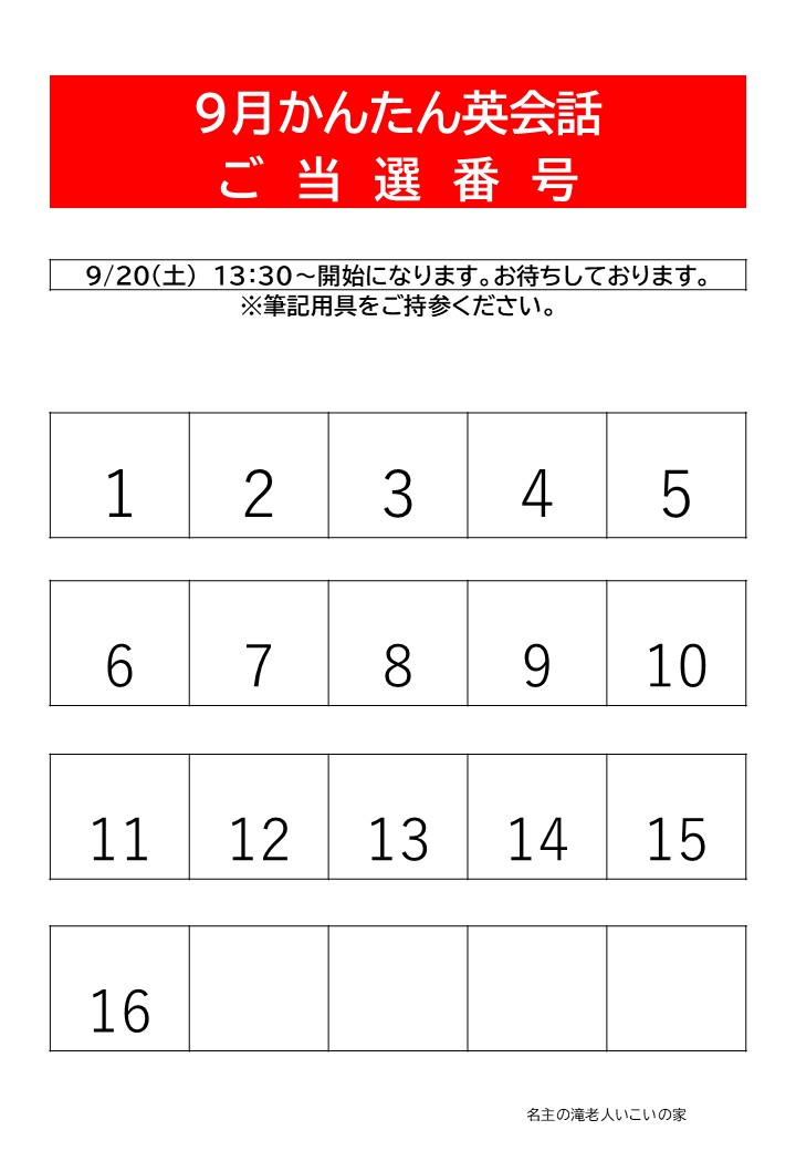 【当選発表】「9月かんたん英会話」抽選結果のお知らせ