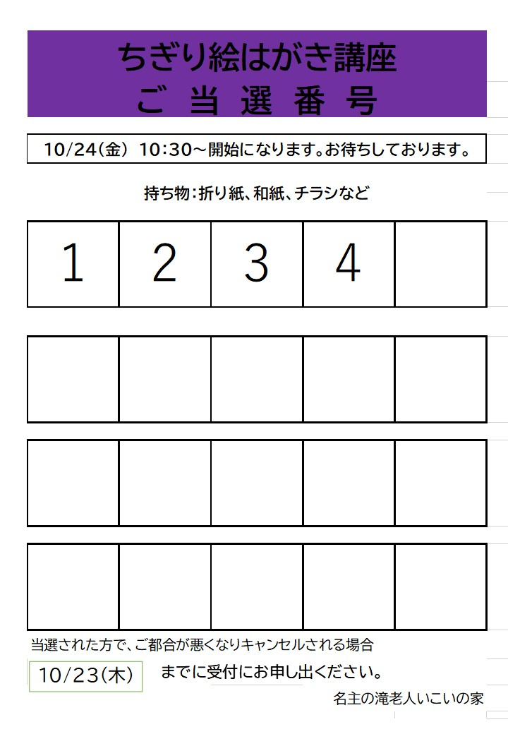 「ちぎり絵はがき」抽選結果を発表させていただきます。