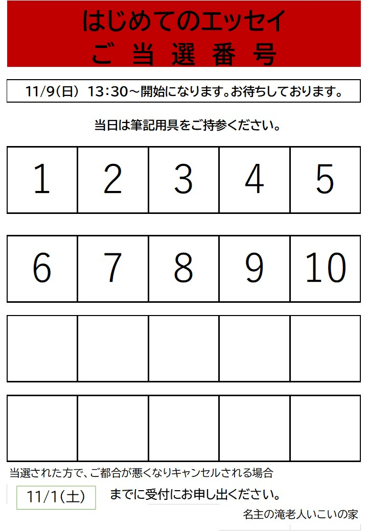 「はじめてのエッセイ」講座の抽選結果を発表させていただきます。