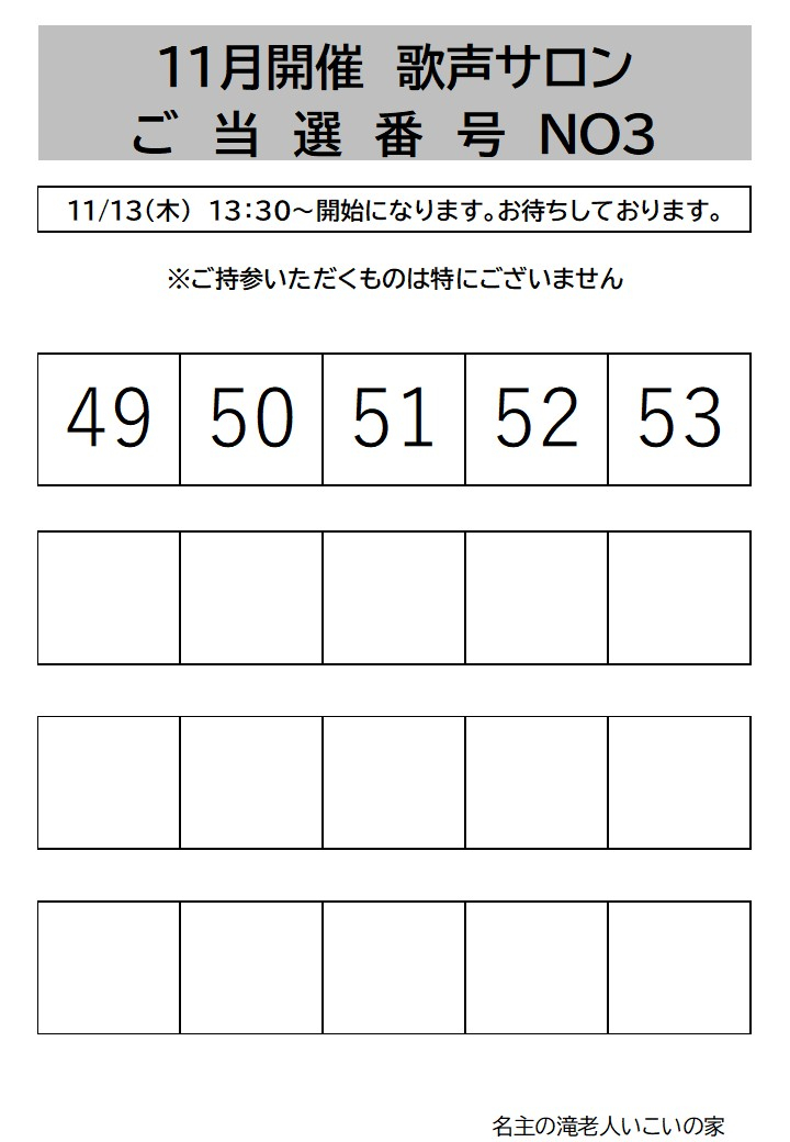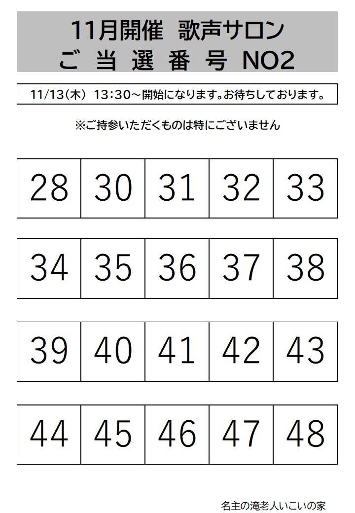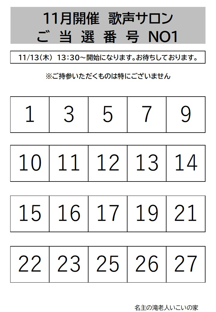 11月開催歌声サロンの抽選結果を発表させていただきます。