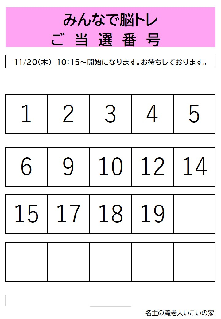 11月20日開催みんなで脳トレの抽選結果を発表させていただきます。