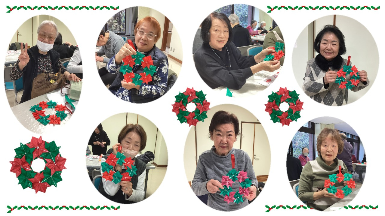 12月 折紙で作るポインセチアのリース講座の様子です。