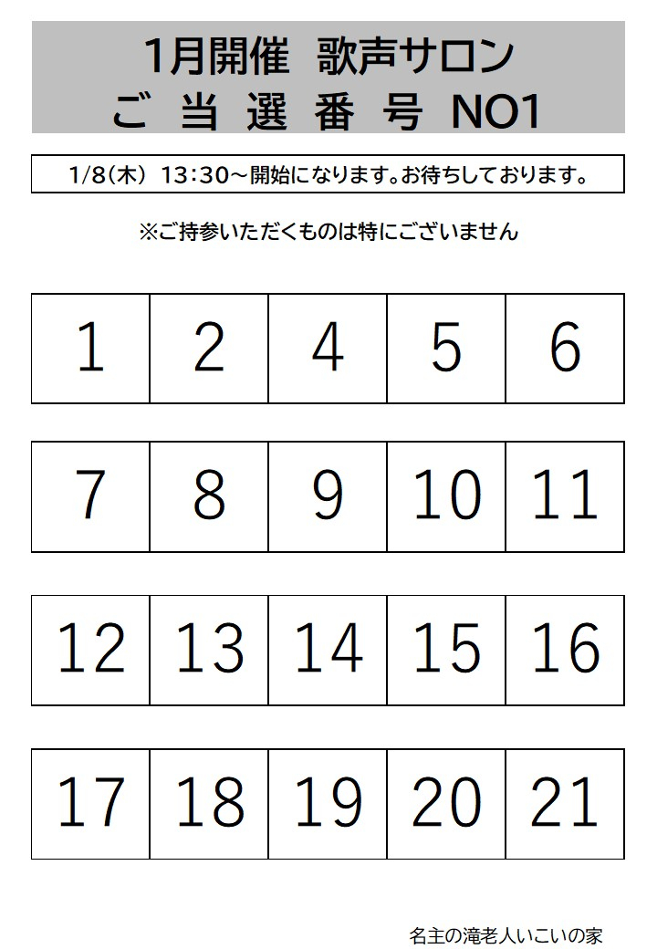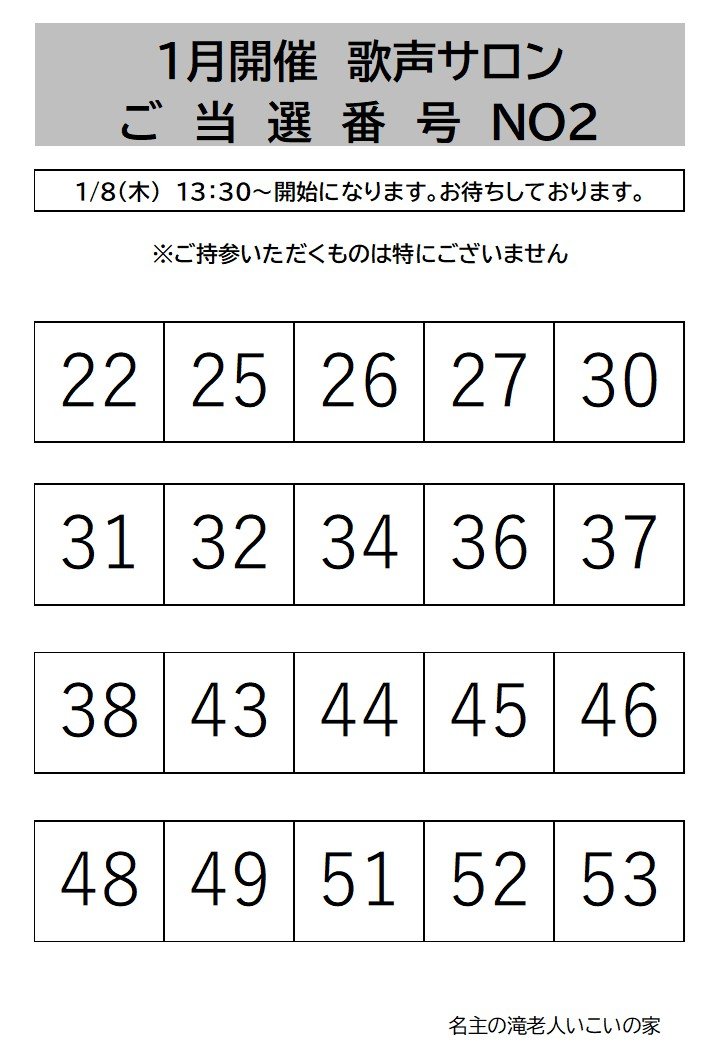 1月開催歌声サロンの抽選結果を発表させていただきます。