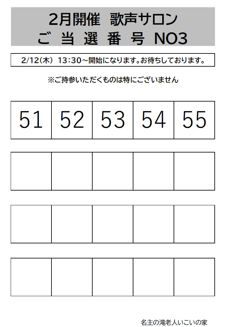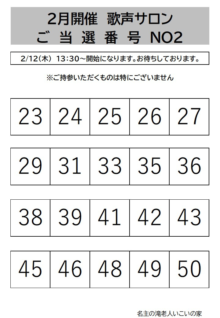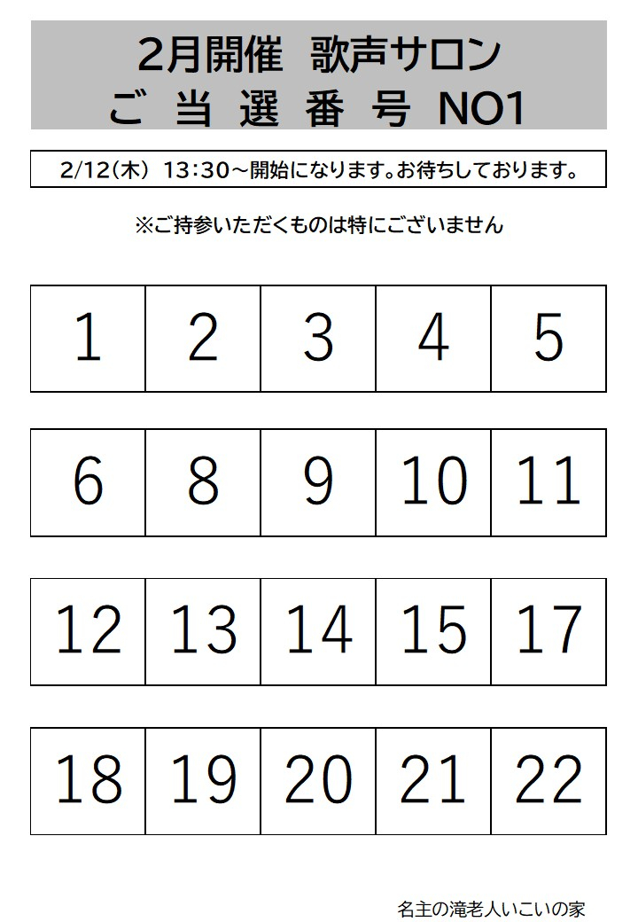 2月開催歌声サロンの抽選結果を発表させていただきます。
