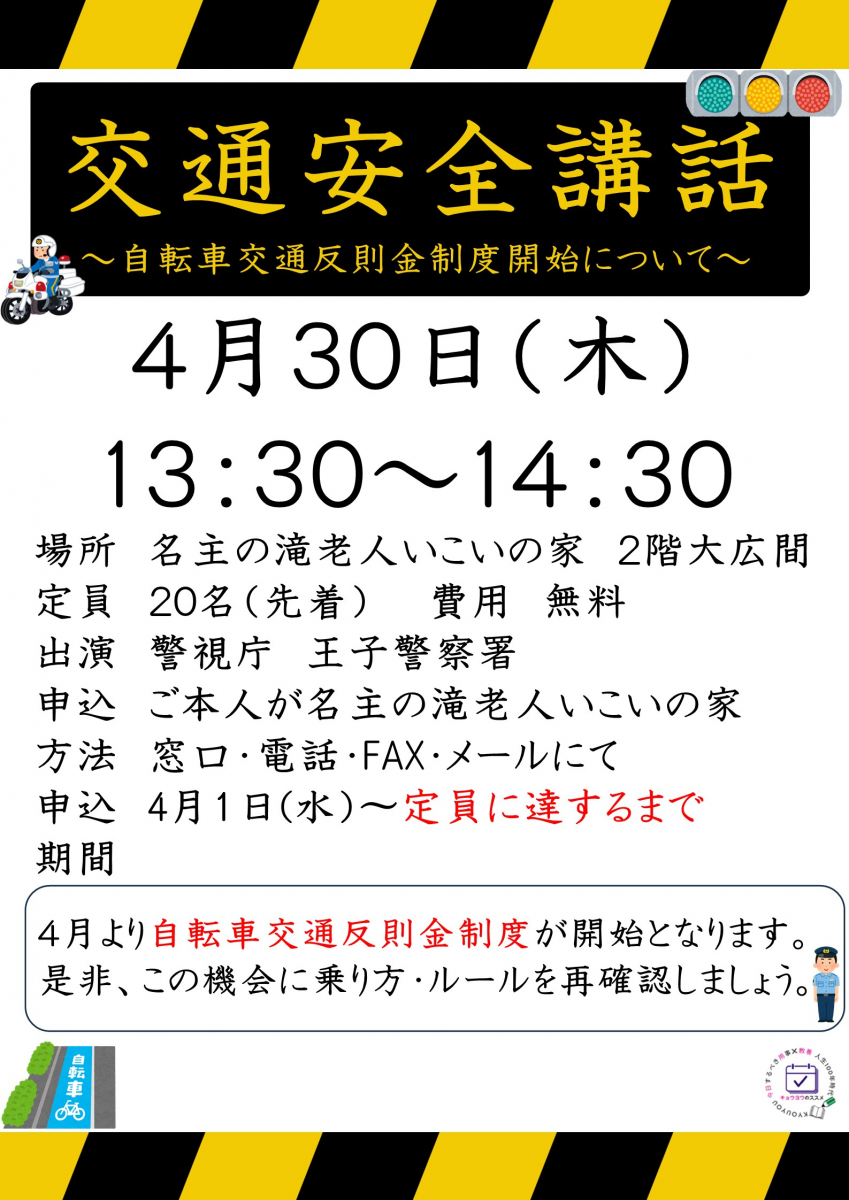 本日より交通安全講話のお申込み開始となります。