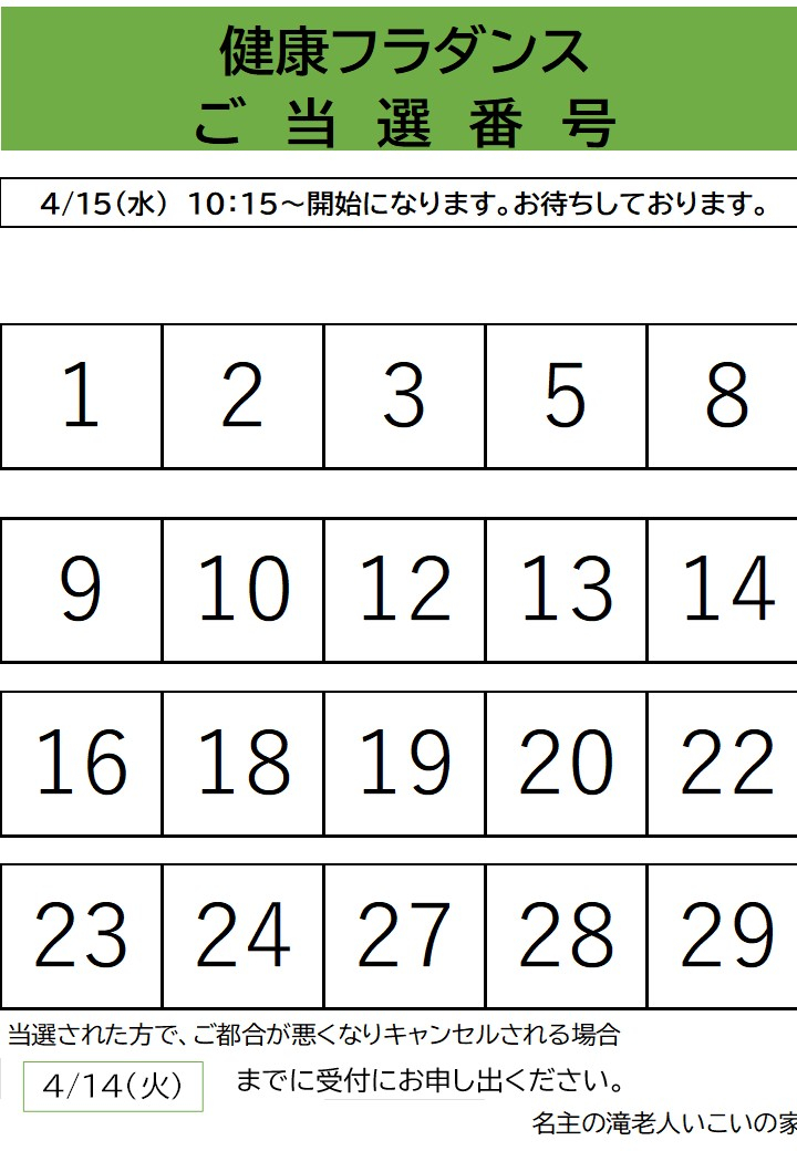 「健康フラダンス教室」抽選結果を発表させていただきます