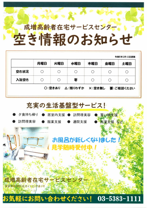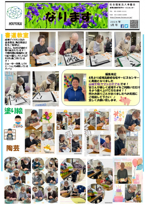 2024.10.11 ☆成増デイ 11月カレンダー作成①☆ 活動報告 2024.10.08 ☆成増デイ ハロウィンのかぼちゃ作り②☆ 活動報告 2024.10.08 ☆成増デイ ハロウィンのかぼちゃ作り①☆ 活動報告 2024.10.08 ☆成増デイ 書道☆ 活動報告 2024.10.05 ☆成増デイ糸巻きゲーム☆ 活動報告 2024.10.04 ☆成増デイ 魚つり☆ 活動報告 2024.10.02 【成増デイ】美容ボランティア お知らせ 2024.10.02 【成増デイ】10月のヘアカットサービスは、、、 お知らせ 2024.10.02 【成増デイ】10月のプログラム表 お知らせ 2024.10.02 【成増デイ】10月の献立表 お知らせ 2024.10.02 ☆成増デイ 講師プログラム陶芸② 活動報告 2024.10.02 ☆成増デイ 講師プログラム陶芸①☆ 活動報告 2024.10.01 ☆成増デイ 脳トレ☆ 活動報告 2024.09.27 ☆成増デイ ふぉーゆー体操☆ 活動報告 2024.09.25 ☆成増デイ 陶芸☆ 活動報告 1 … 18 19 20 21 22 … 34