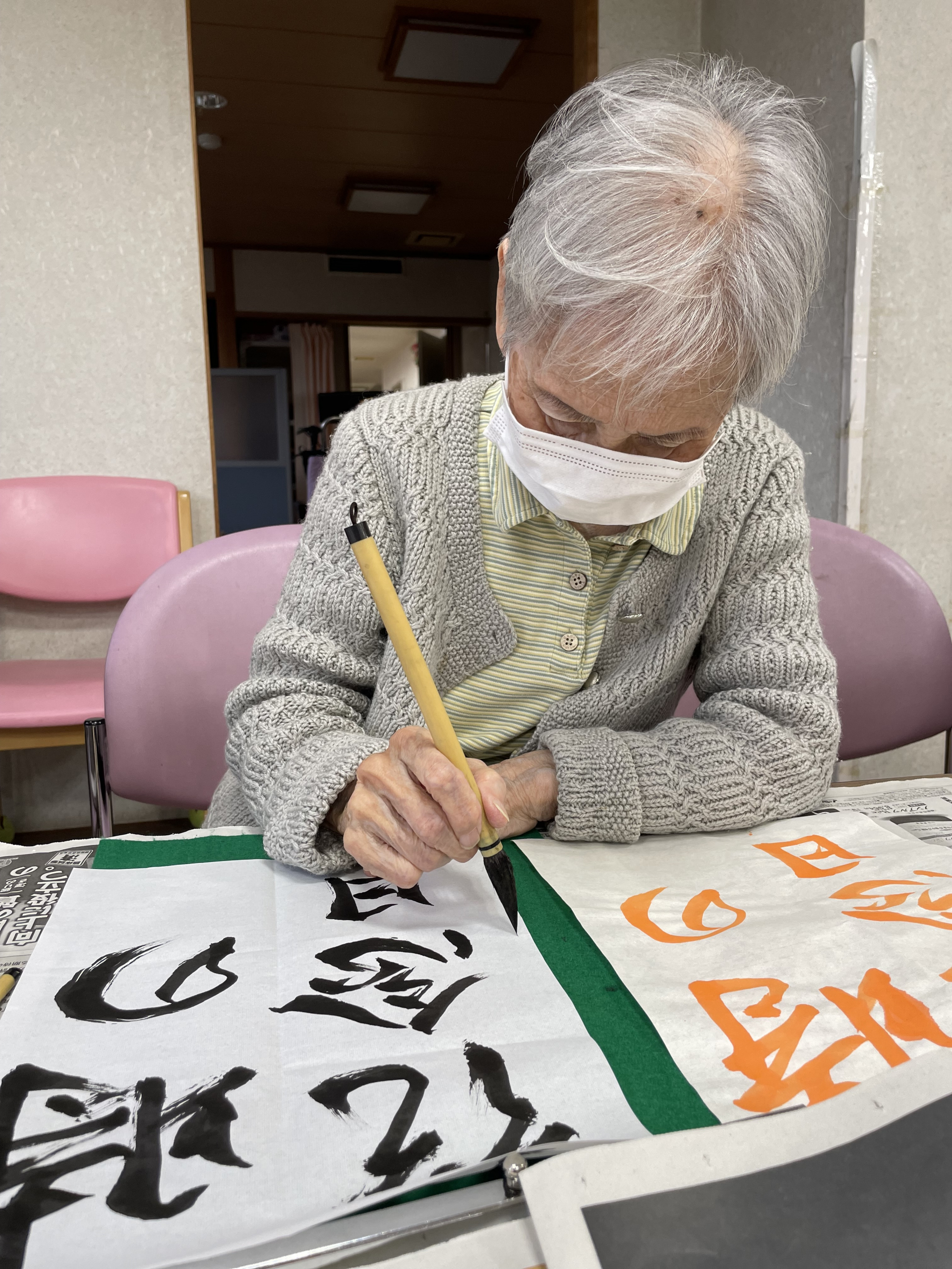 皆さん、真剣に取り組まれています~書道は姿勢も正しくなり、脳の活性化にもつながります!