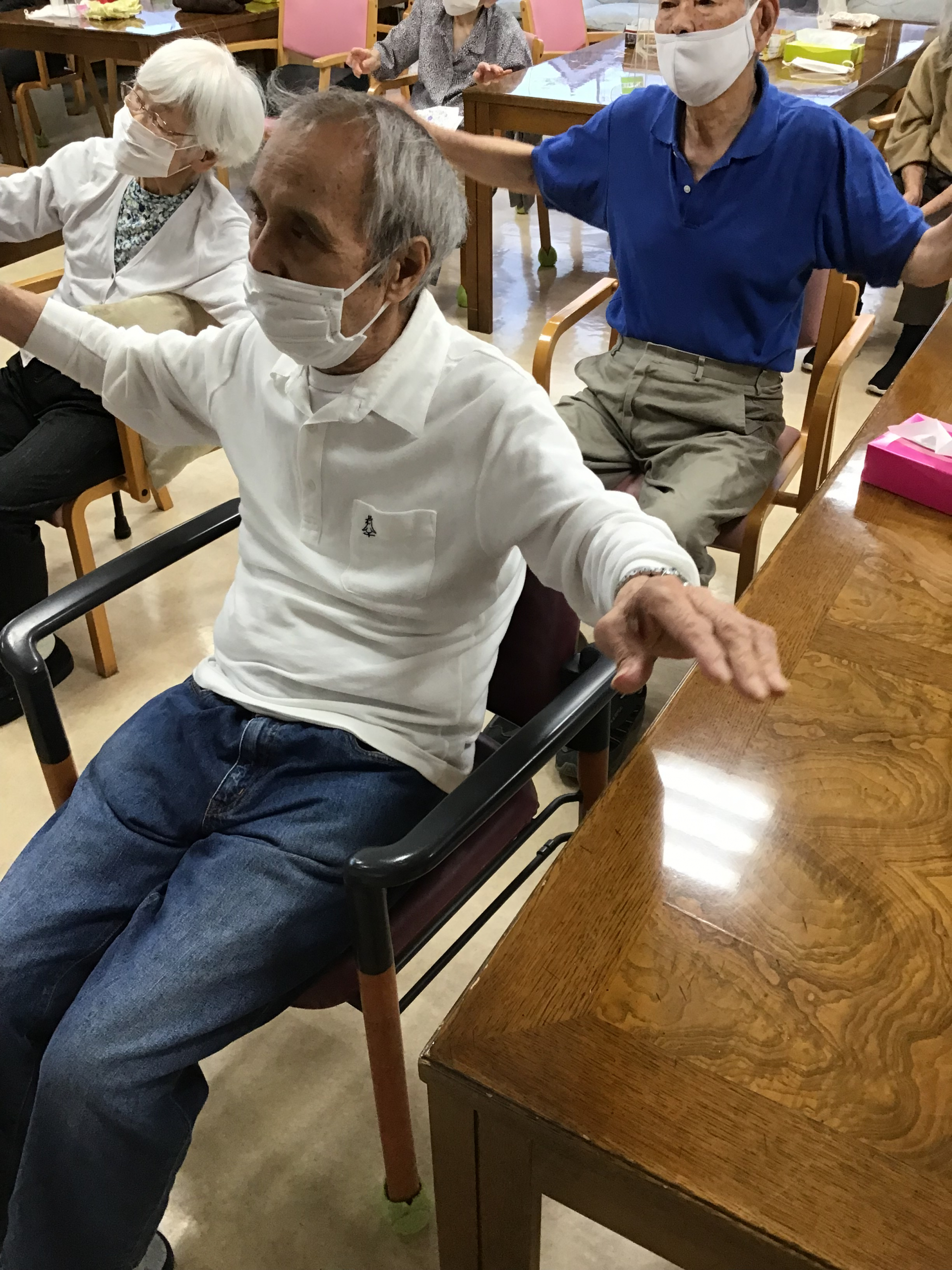 あいにくの天気ですがセンター内では皆さん元気に体操をしました!