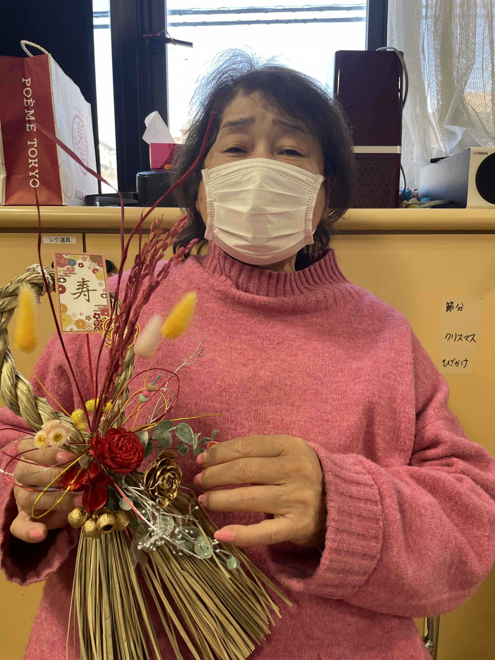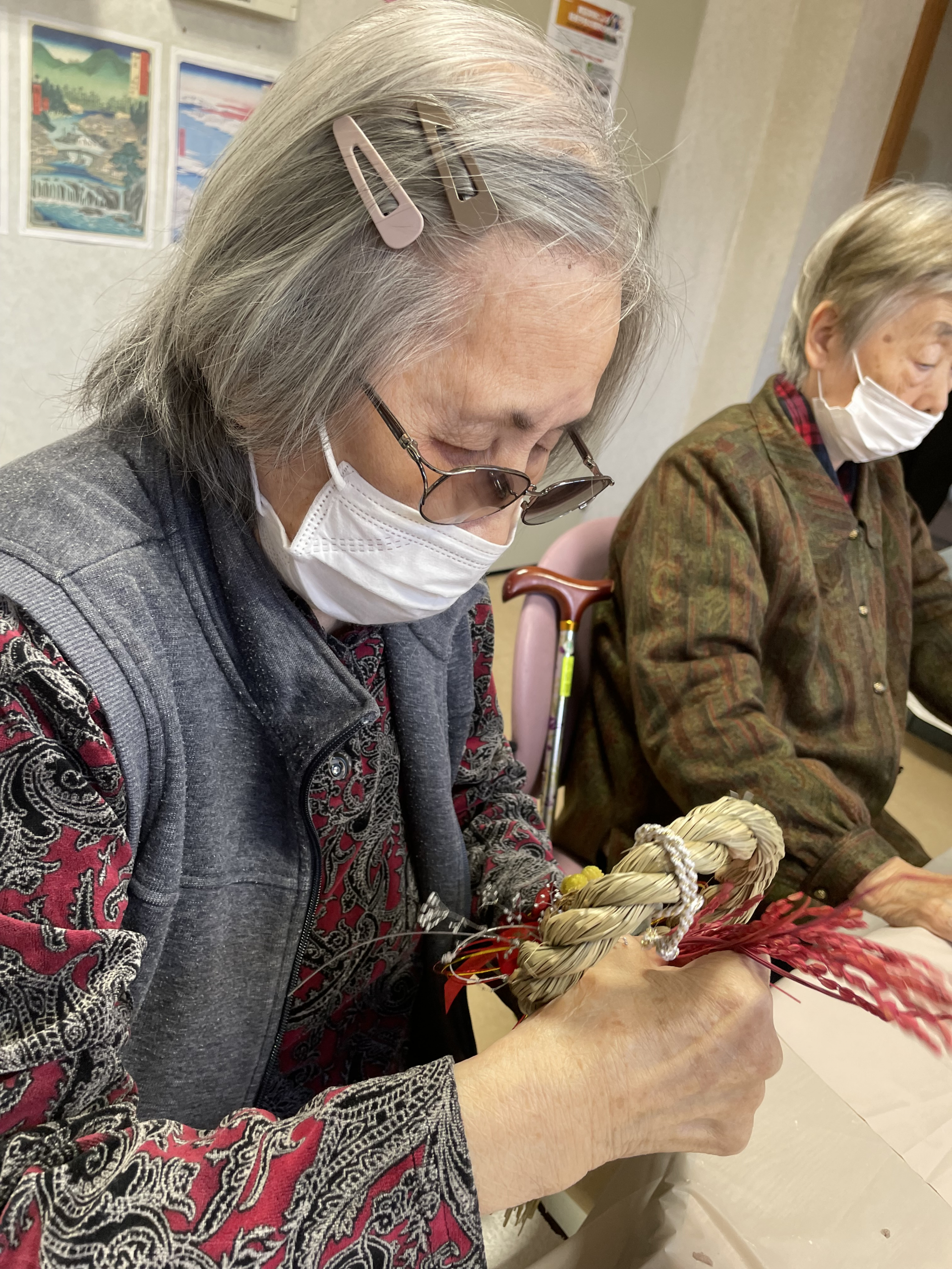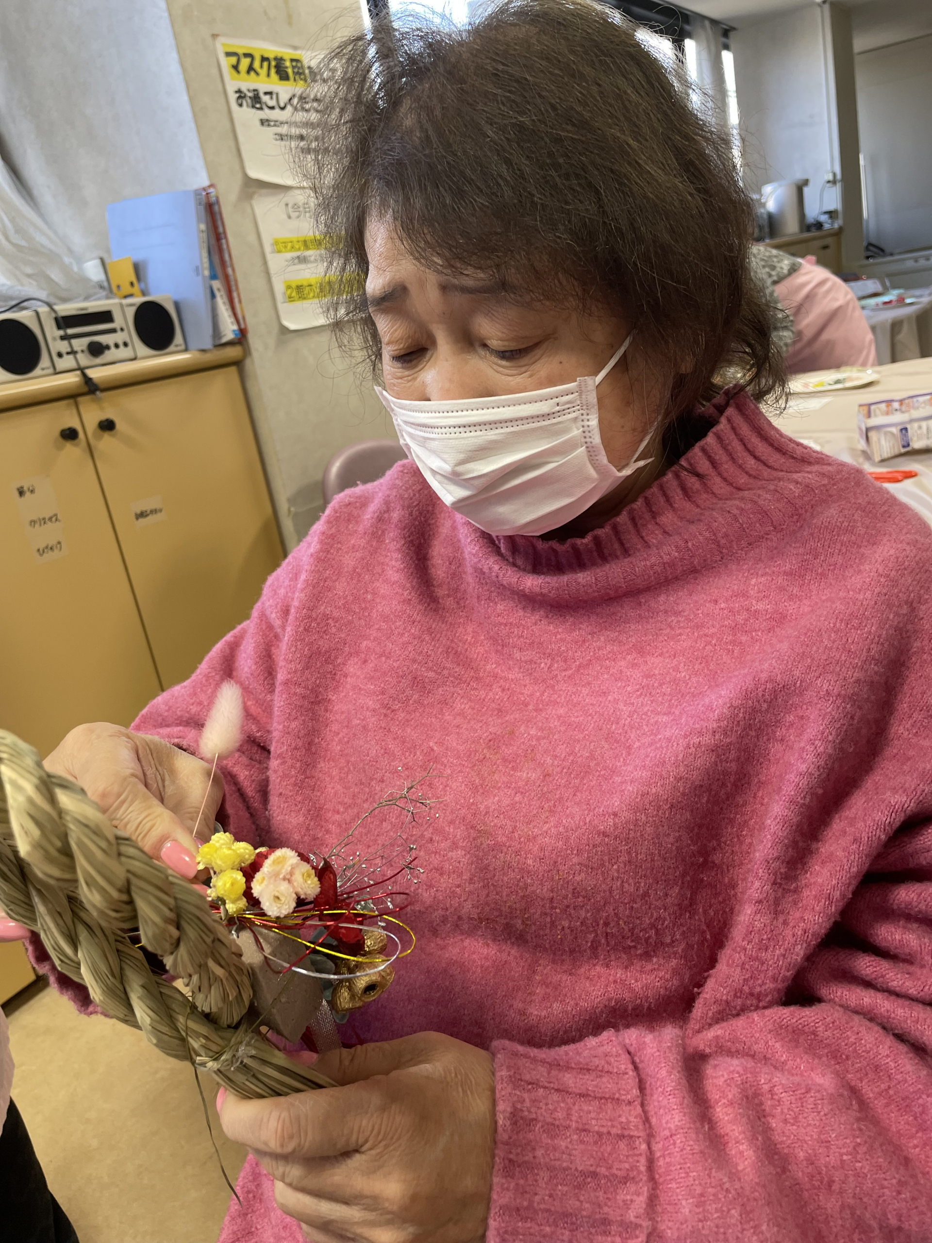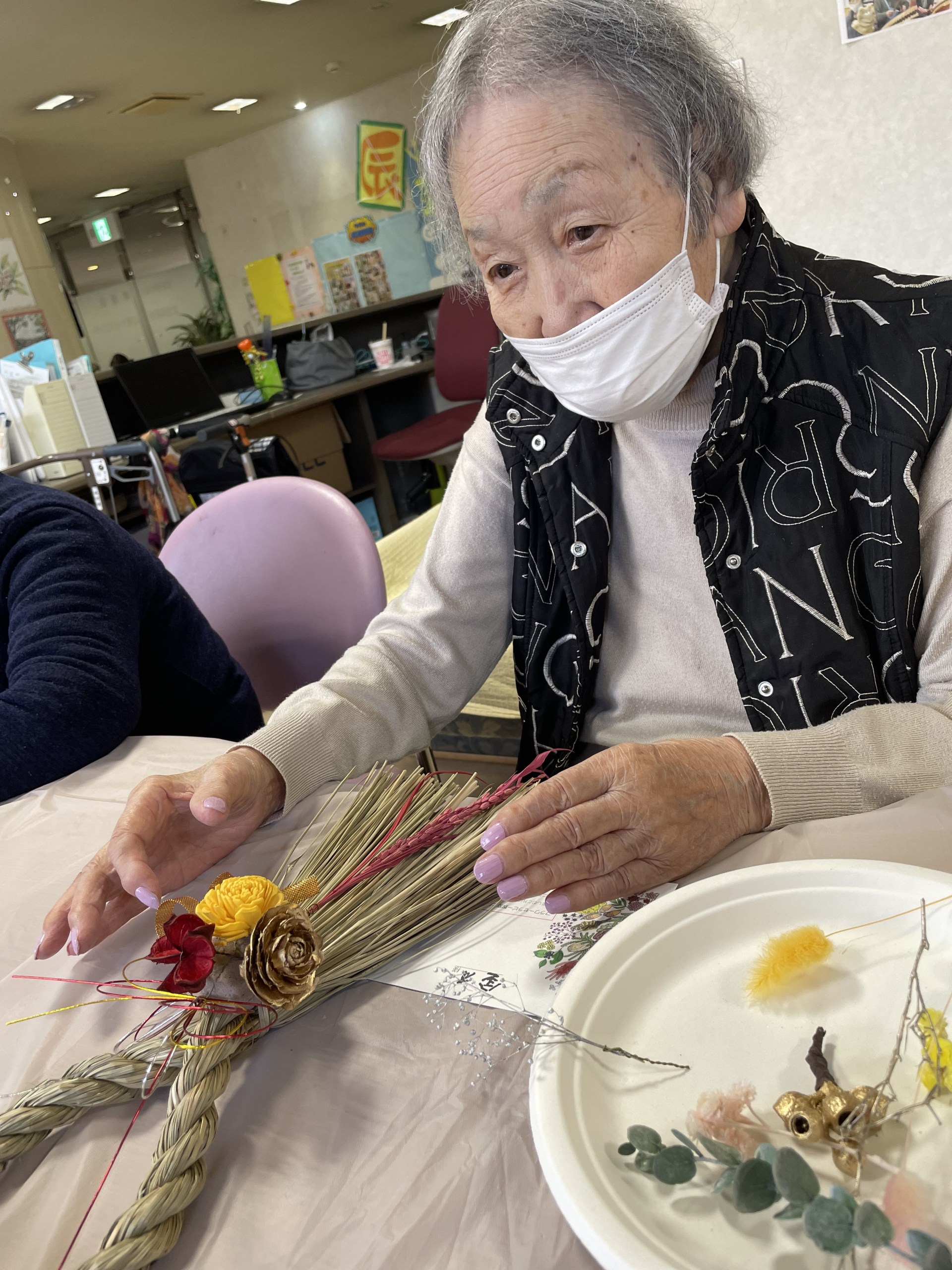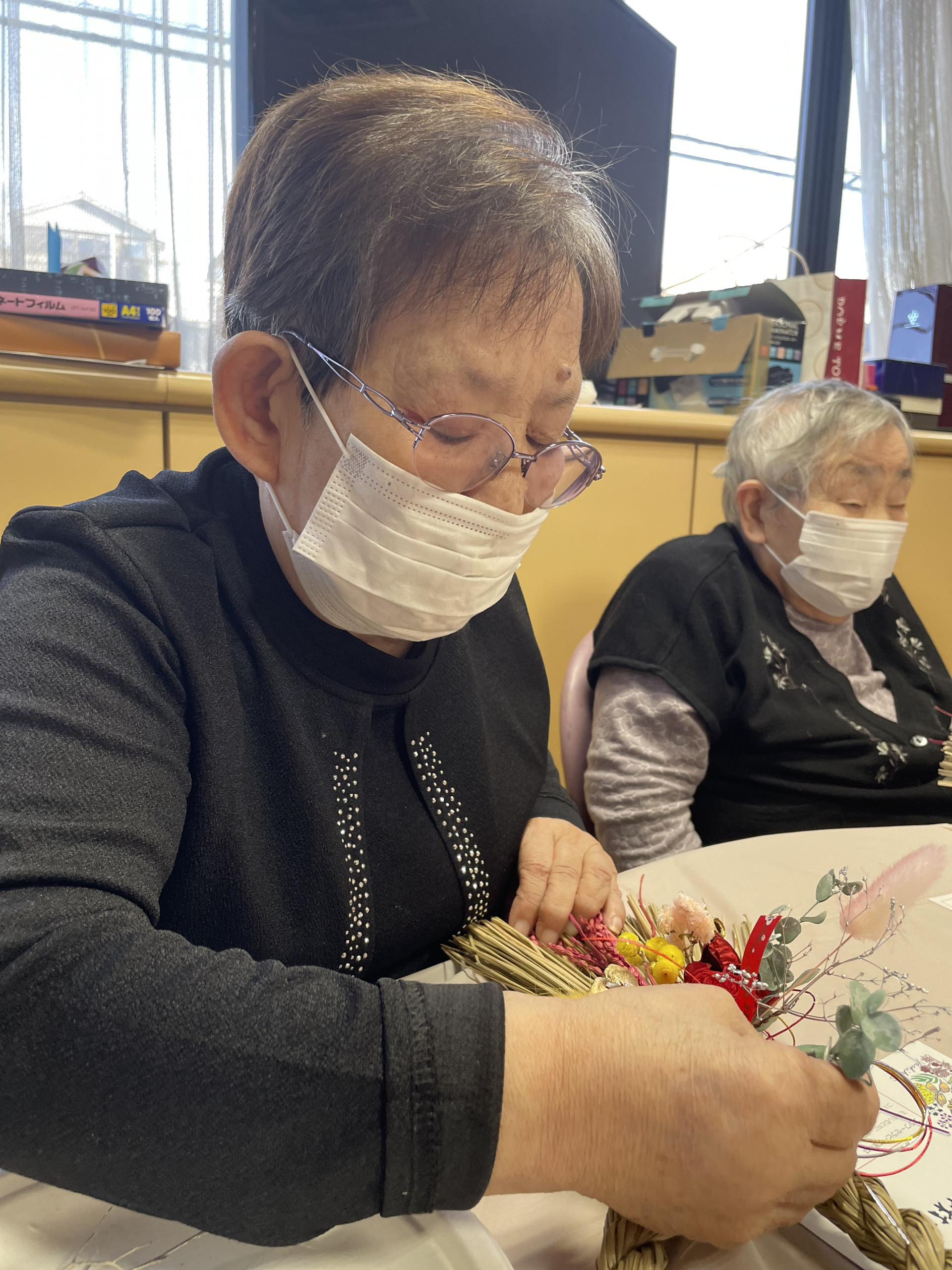 本日は【フラワーセラピー】を行いました。1月に向けてしめ縄作りです。