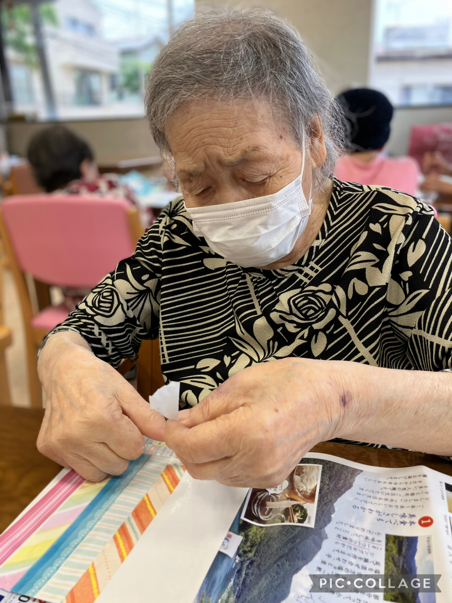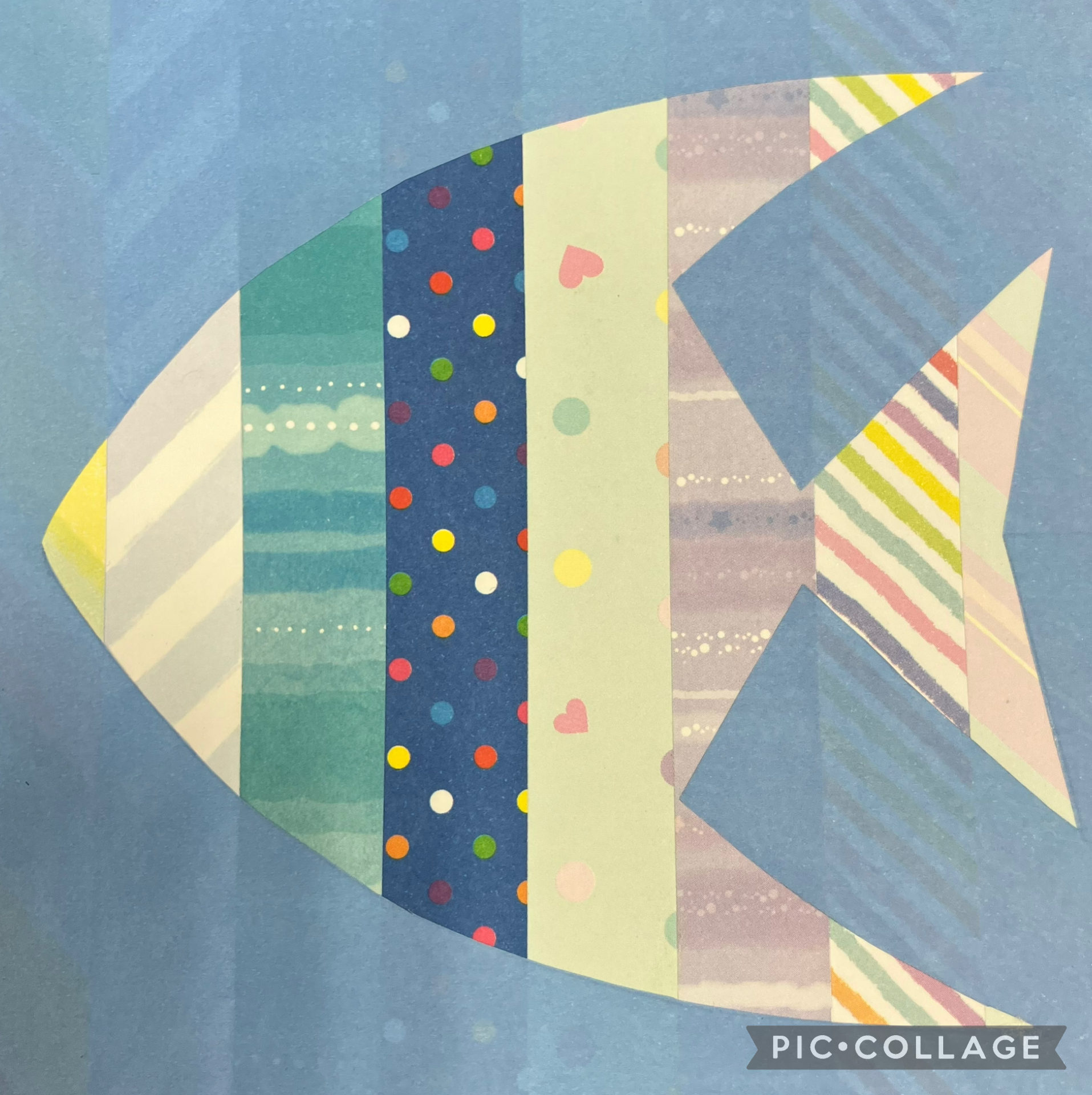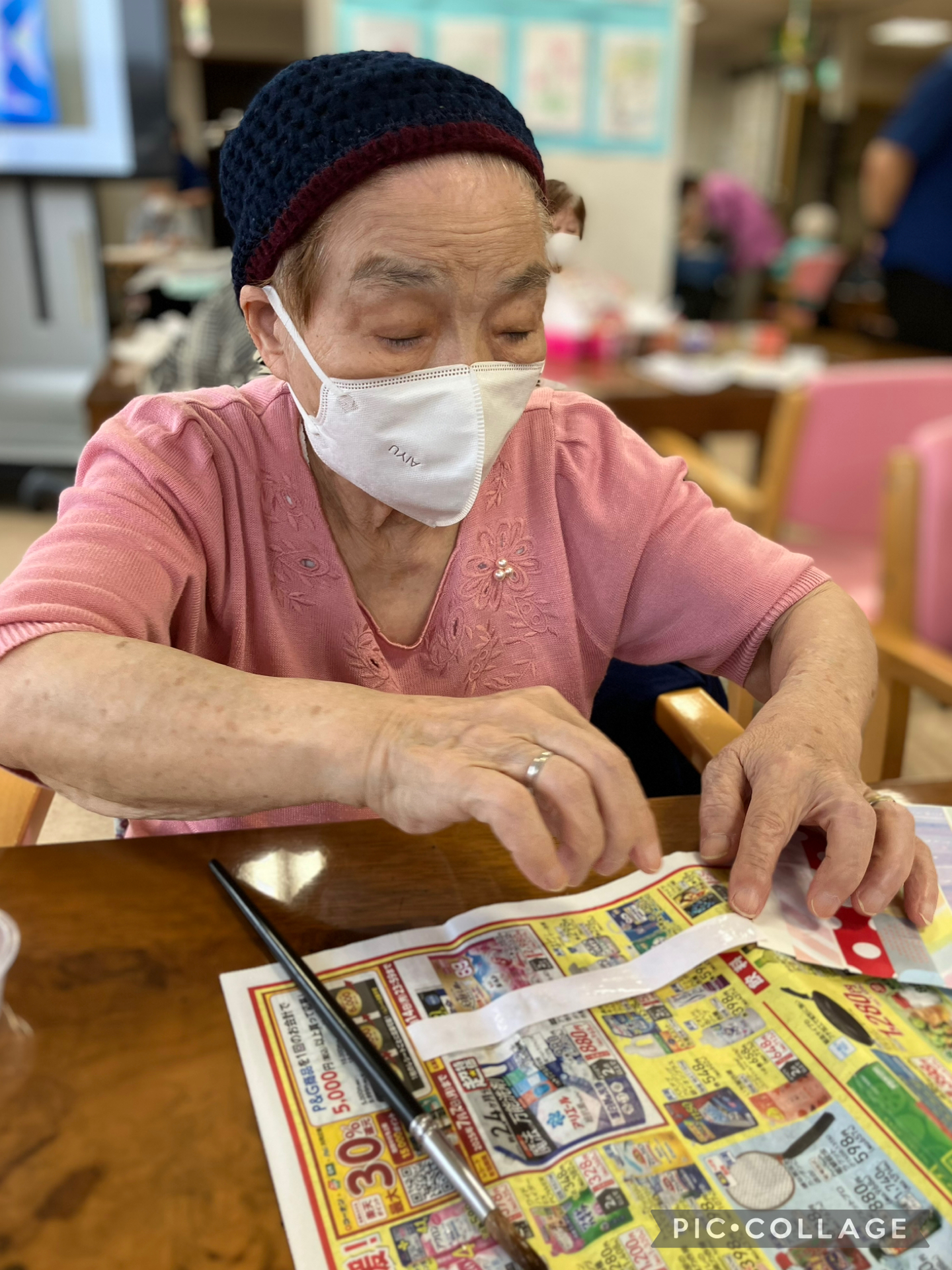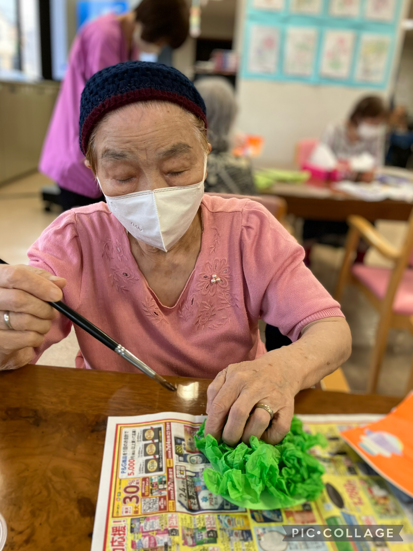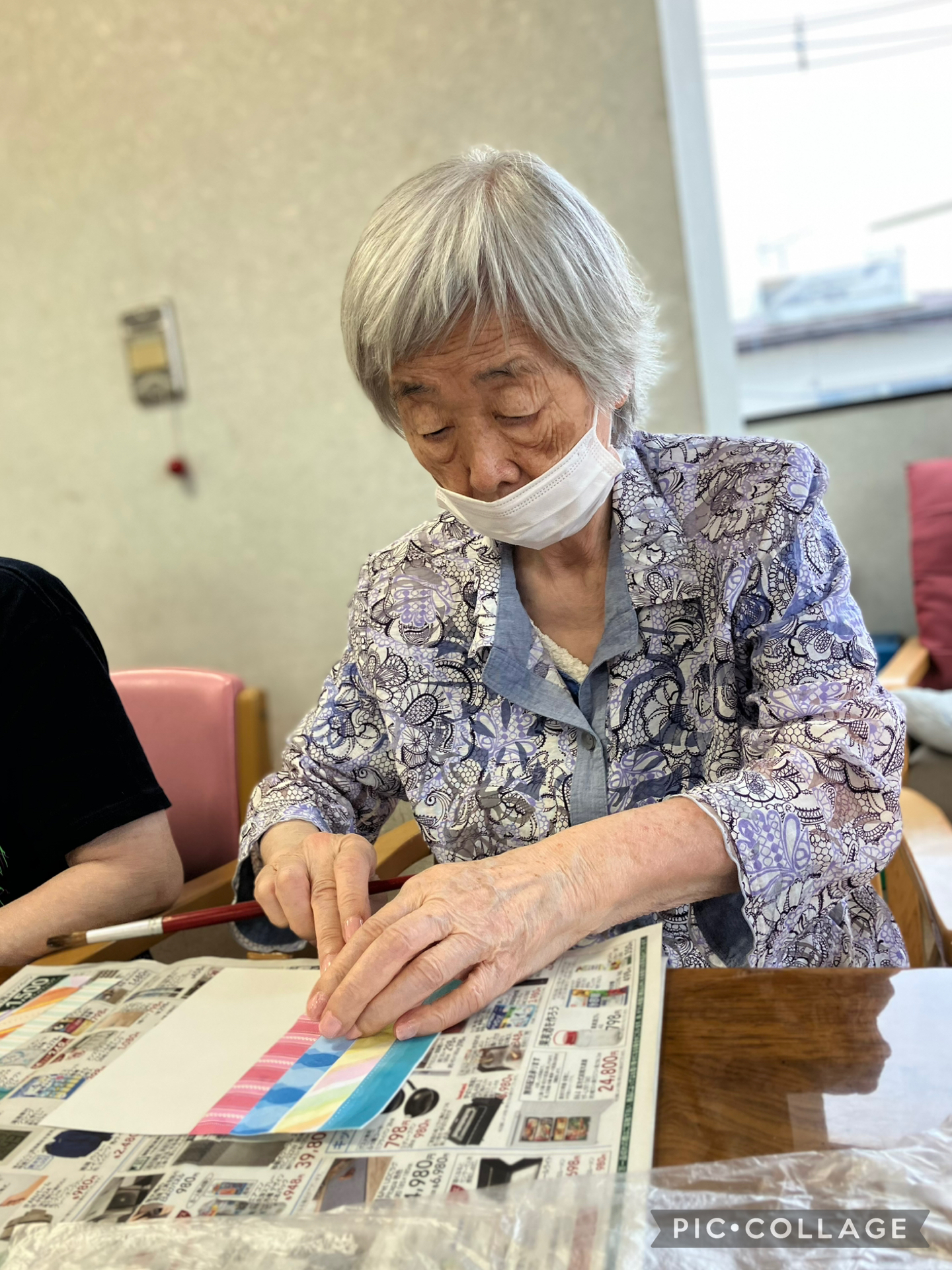 7月の壁画の熱帯魚や水草を皆さんで作っている様子です!
