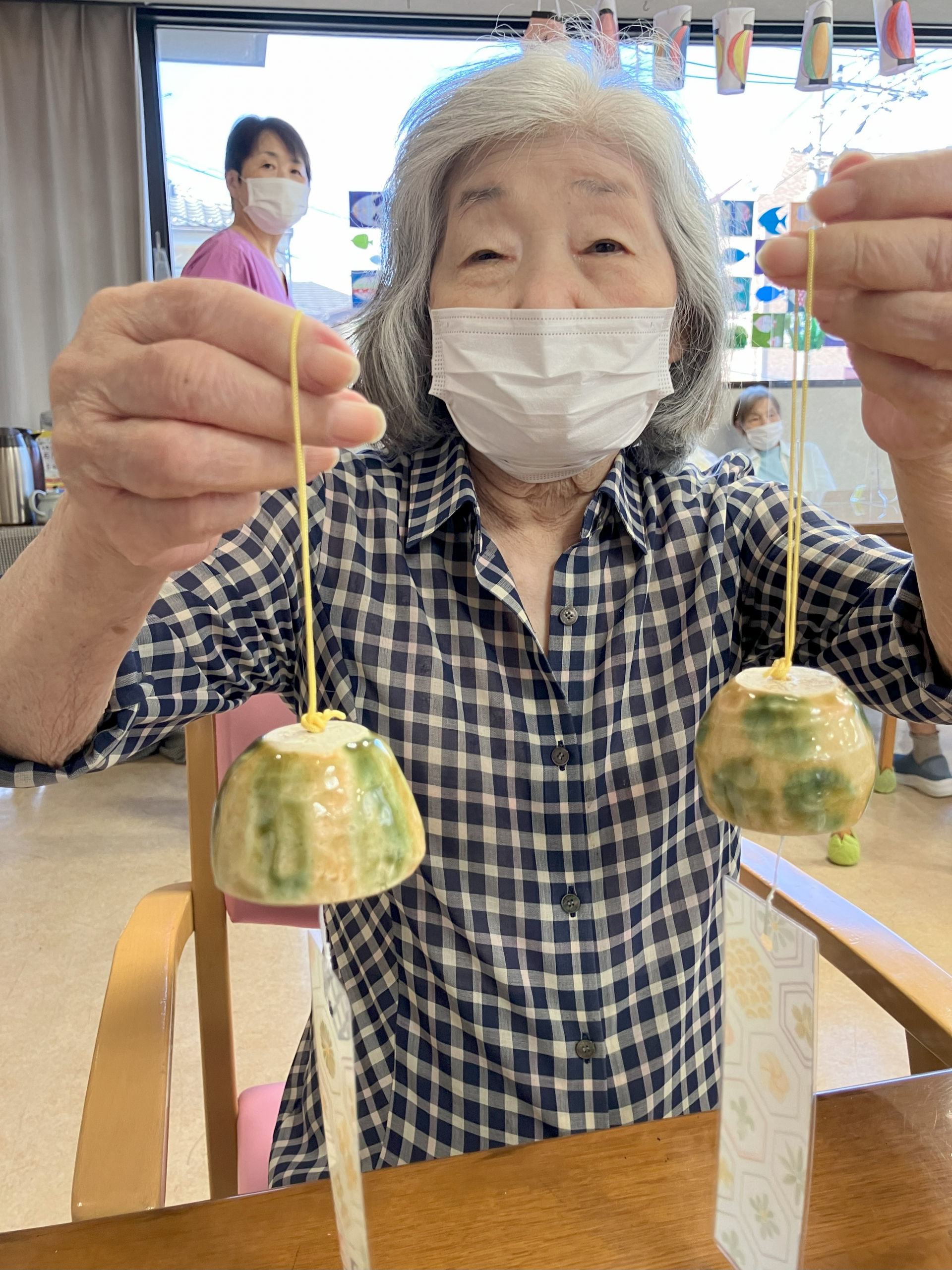 完成された風鈴の形や模様にはご利用者の皆様方の個性が出ておられました!