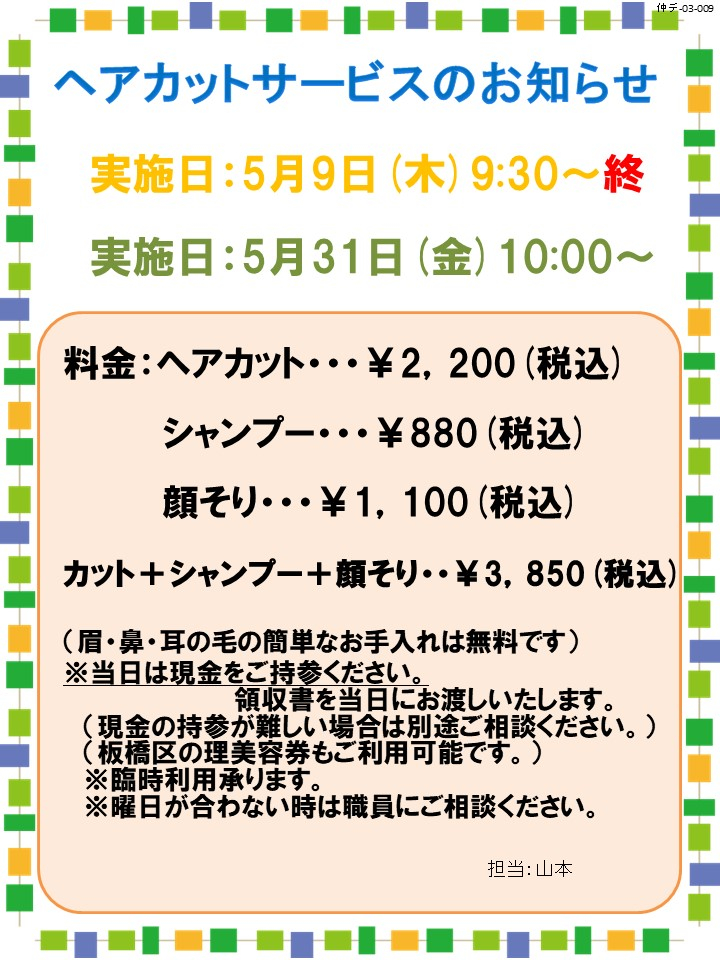 【成増優っくりデイ】ヘアカットサービスのお知らせ