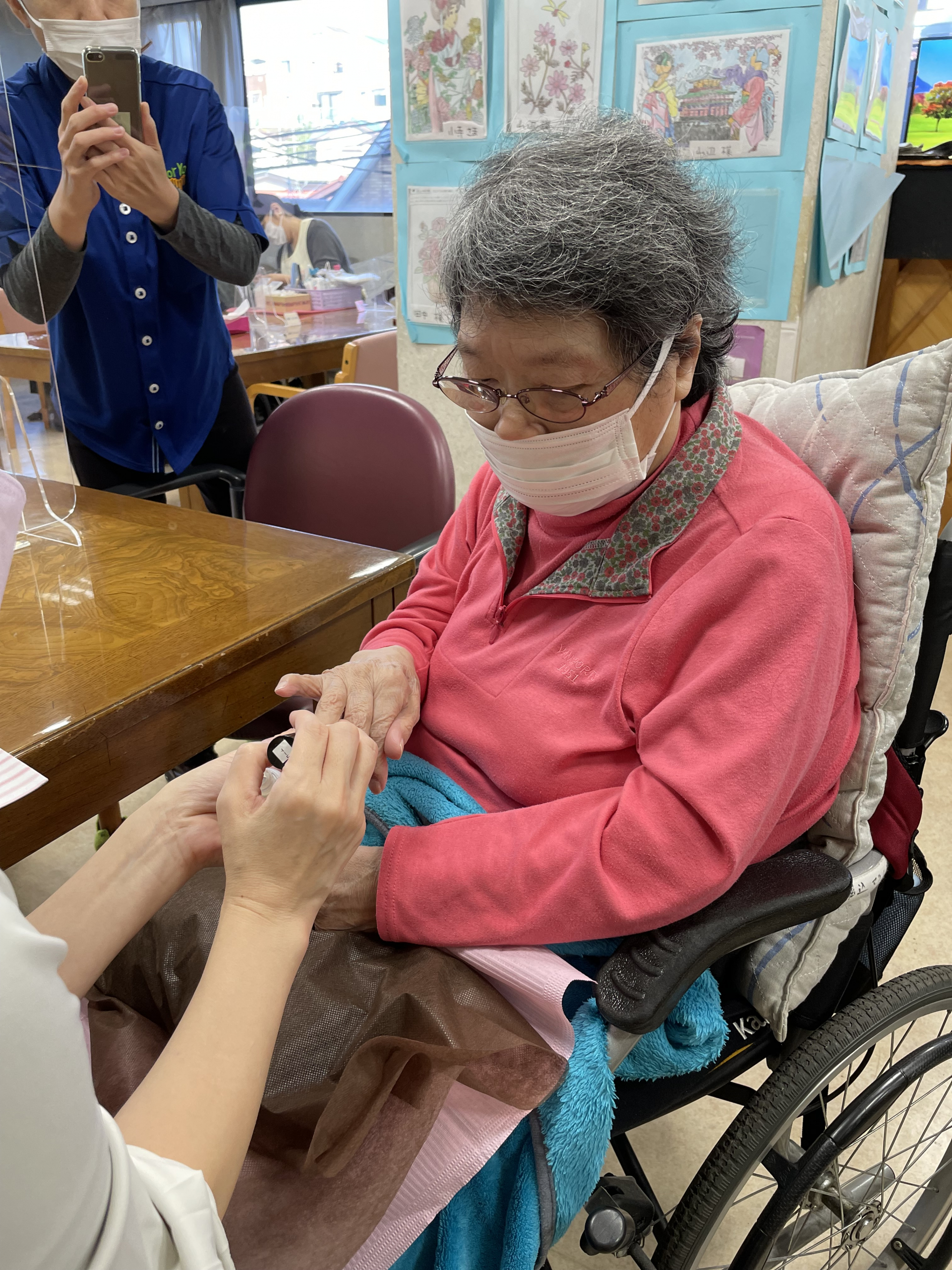 ボランティアの方とネイルの色を決めたり、世間話しながらリラックスした時間を過ごされました!