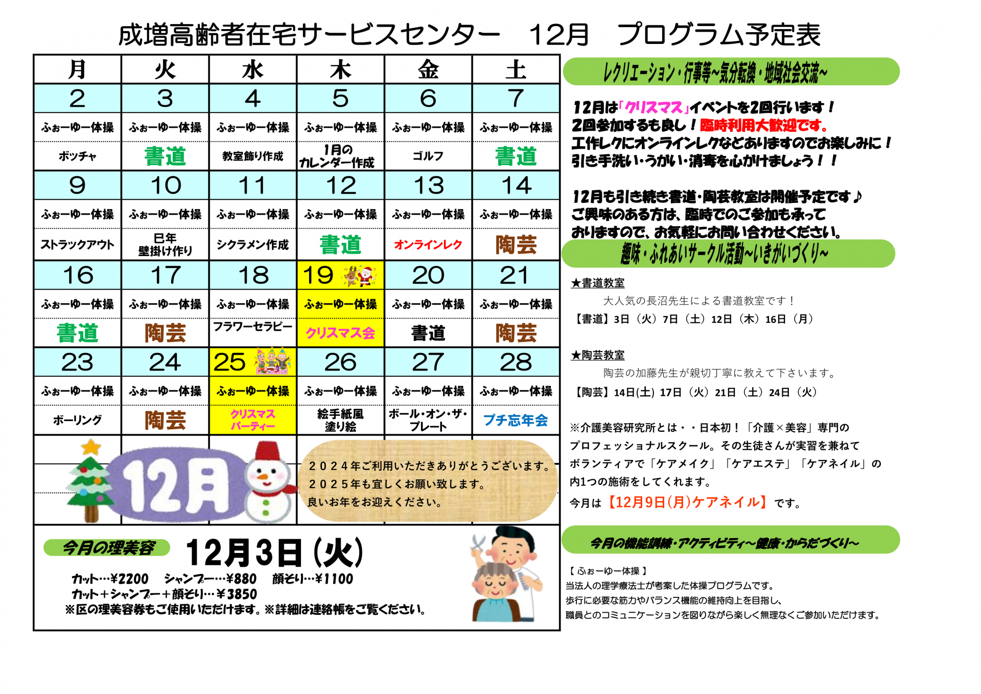 今月の目玉は「クリスマス」会とパーティーがありますので是非とも参加下さい(^_-)-☆