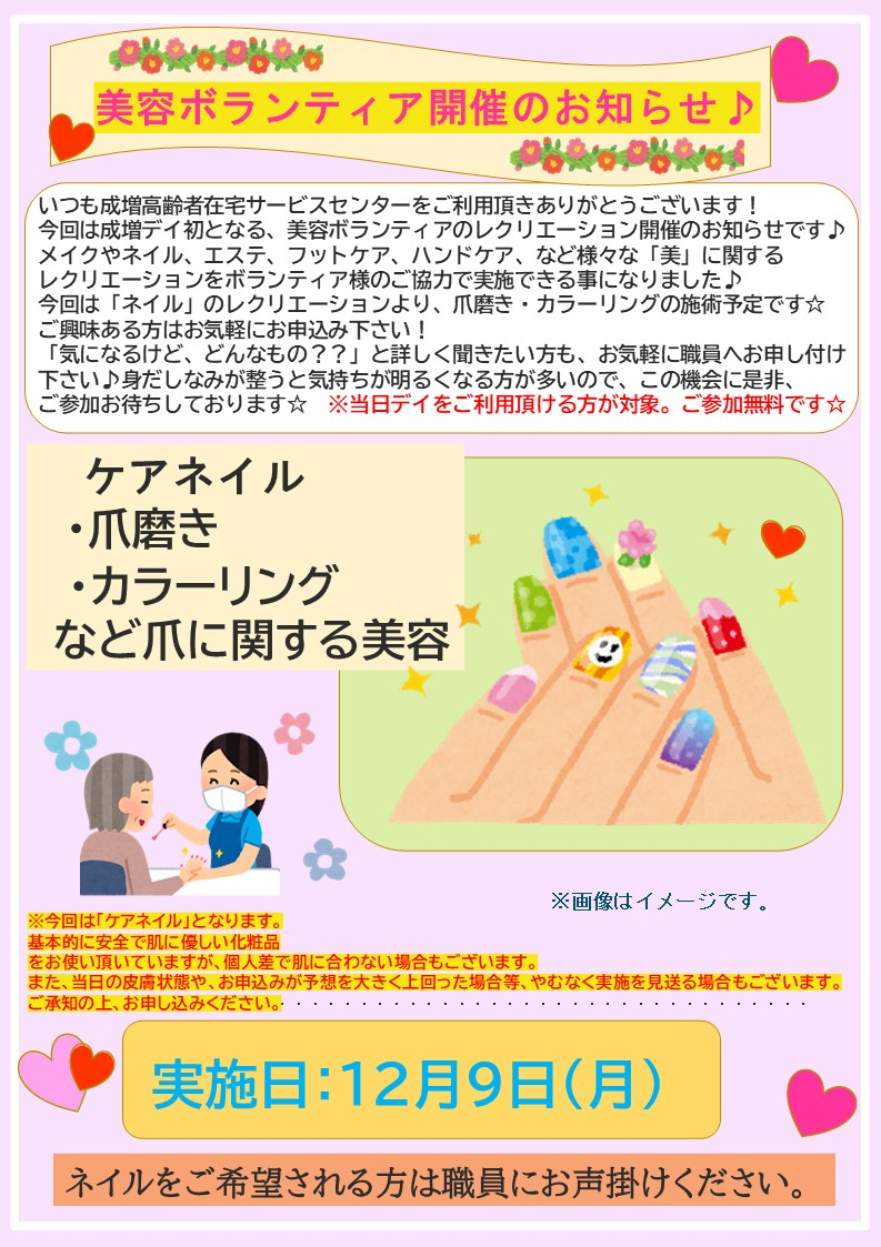 【成増優っくりデイ】介護美容研究所ボランティア~ケアネイル