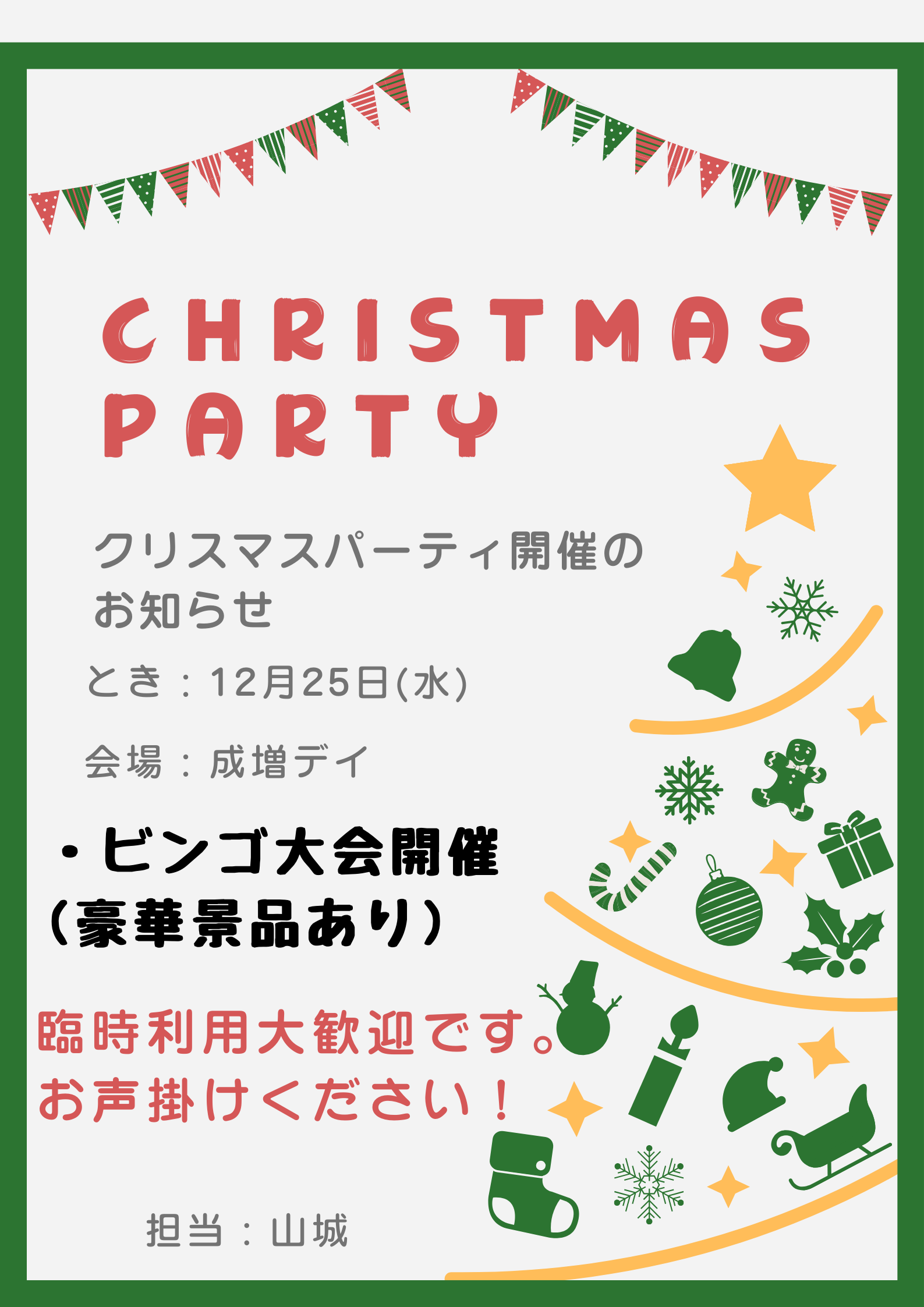 【成増優っくりデイ】クリスマスイベントのお知らせ