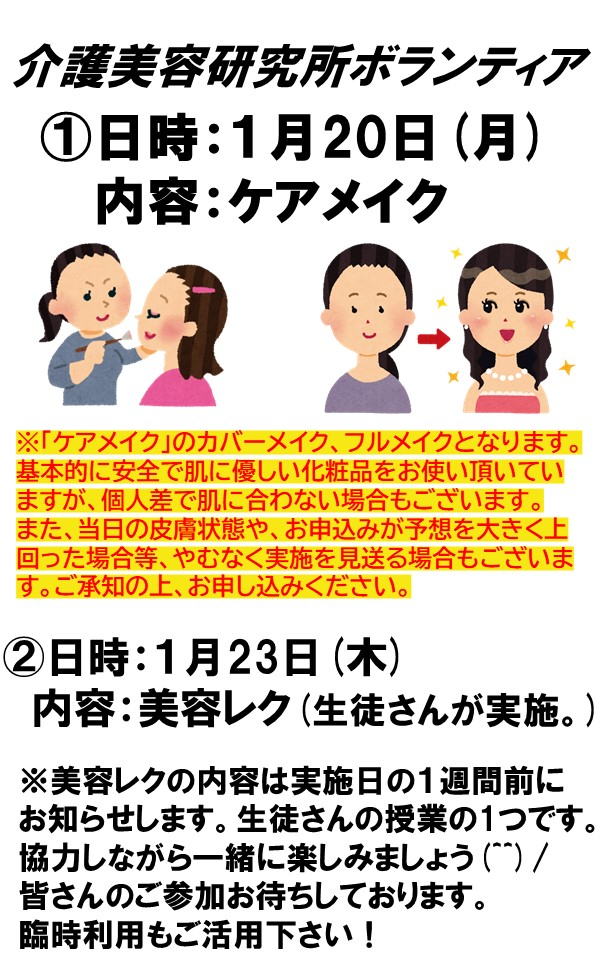 今月の介護美容研究所ボランティアは「ケアメイク」と