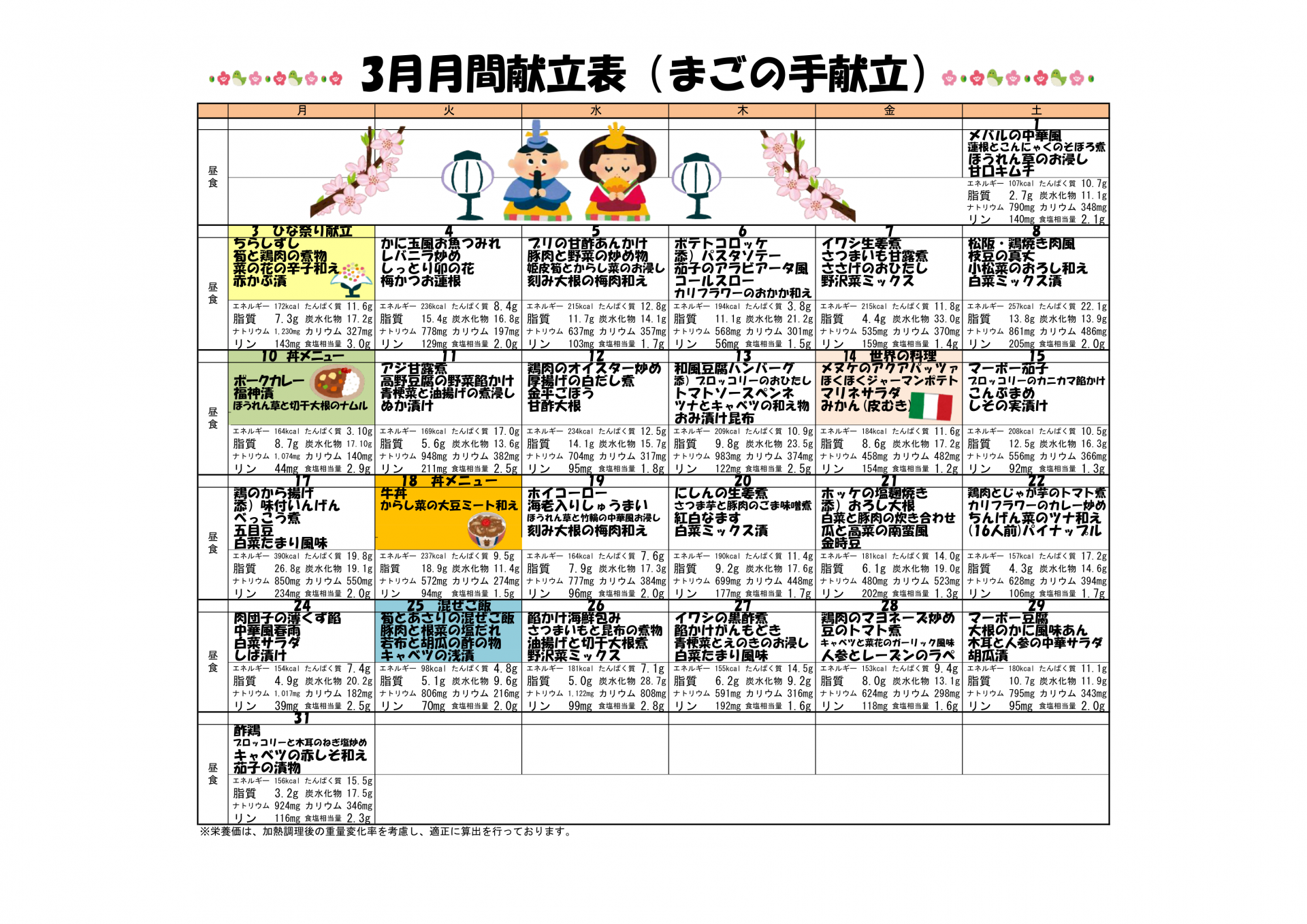 今月はちらし寿司の他にも色々なイベント食ありますよ~