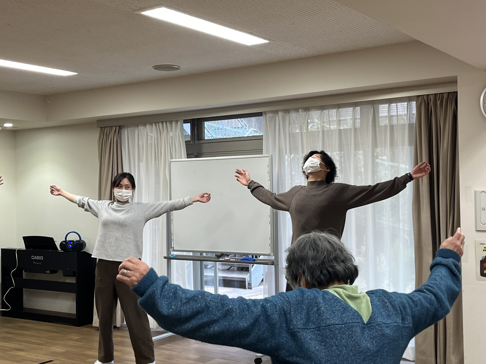 まずは留学生の方と一緒に「中国体操」を行いました。