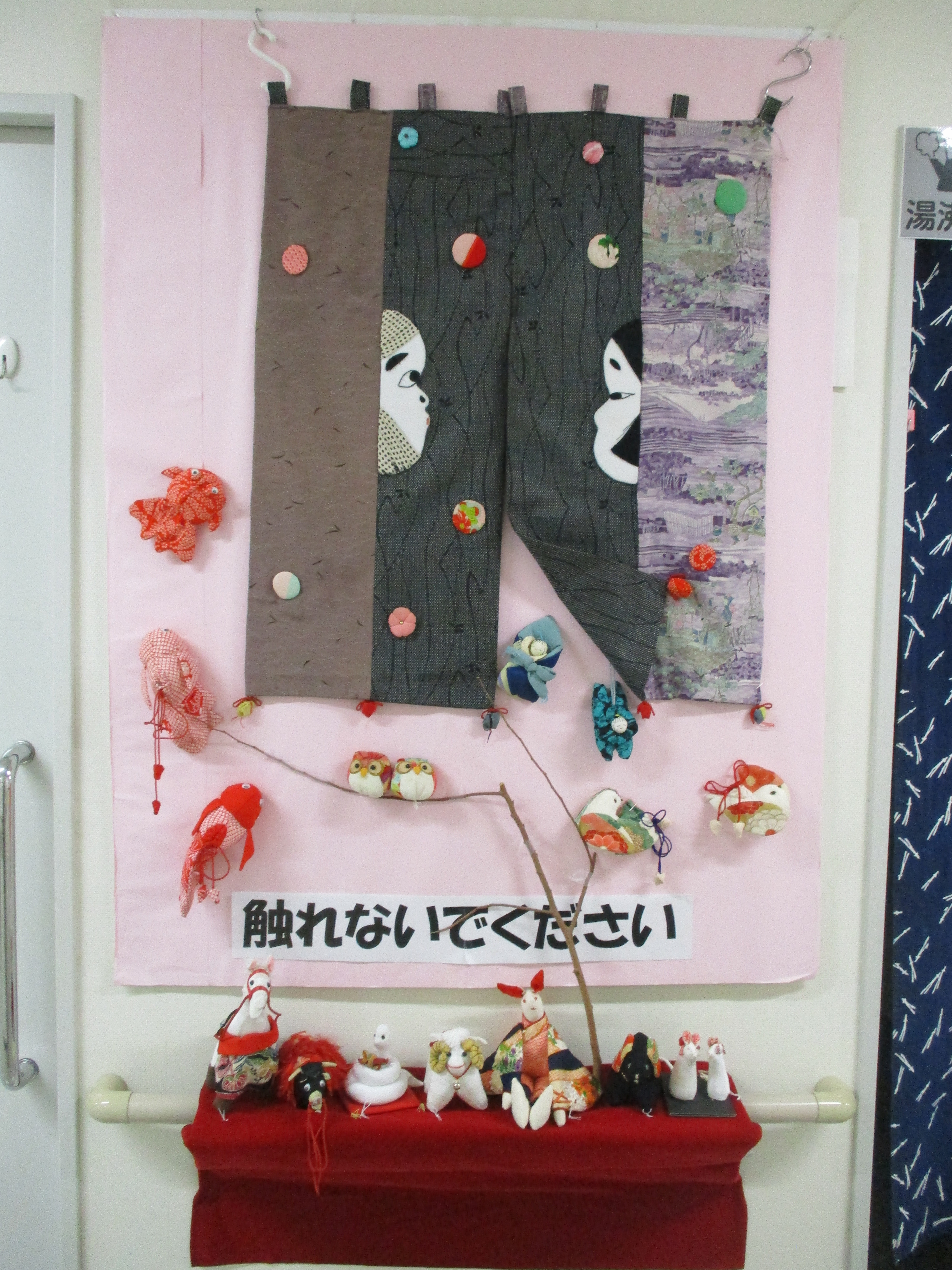懐かしい和柄の生地をいきものの特徴に合わせて使用して、沢山の作品が所狭しと飾られています。