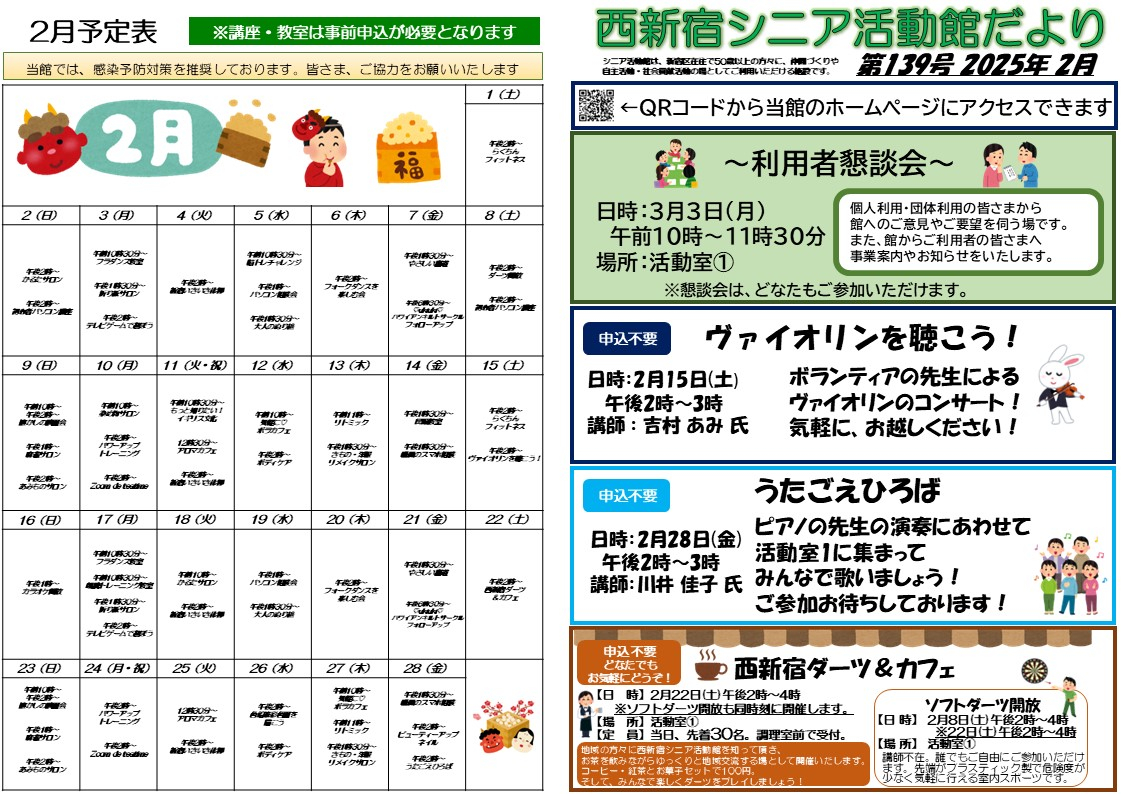 西新宿シニア活動館だより 令和7年2月号のご案内です。