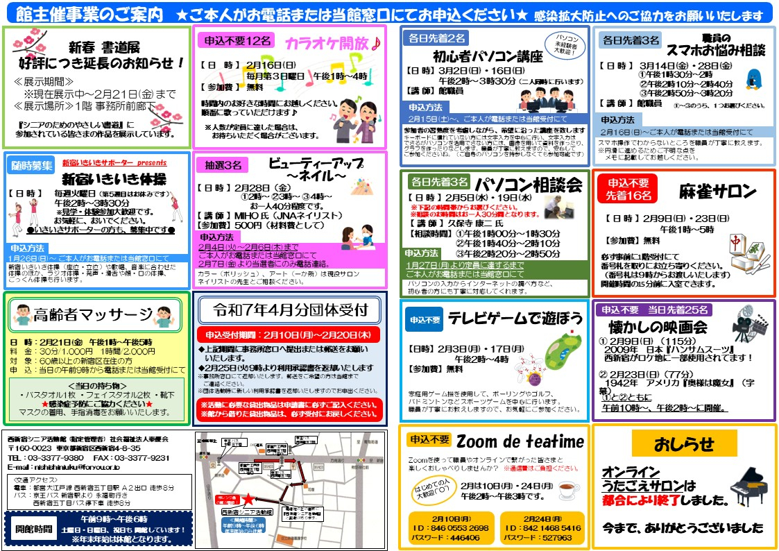 西新宿シニア活動館 館だより 令和7年2月号発行のお知らせ