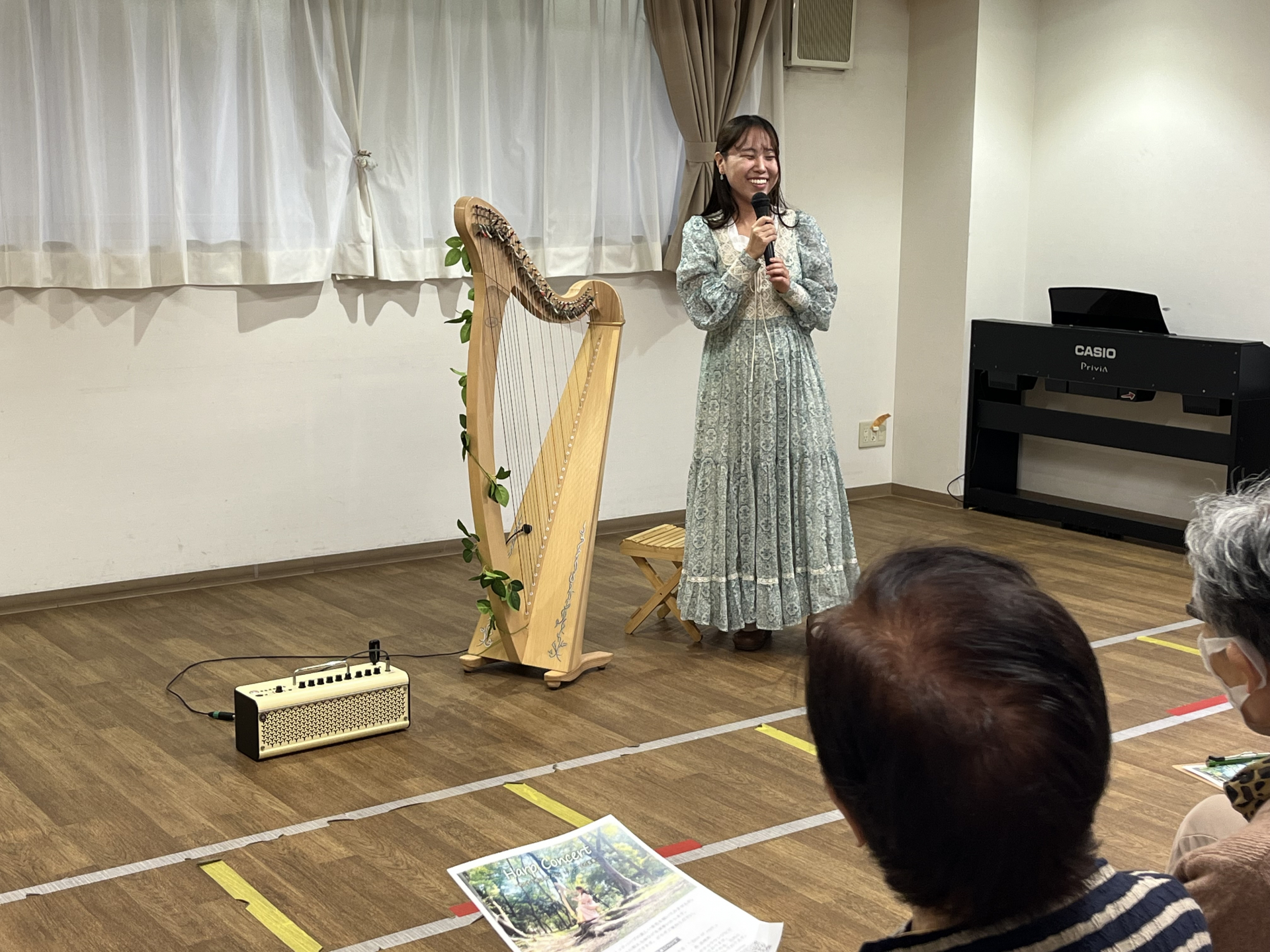質問コーナーでは、ハープについて、重さや弾き方、運び方など、色んな方からの質問が飛び交う事に(^ω^)