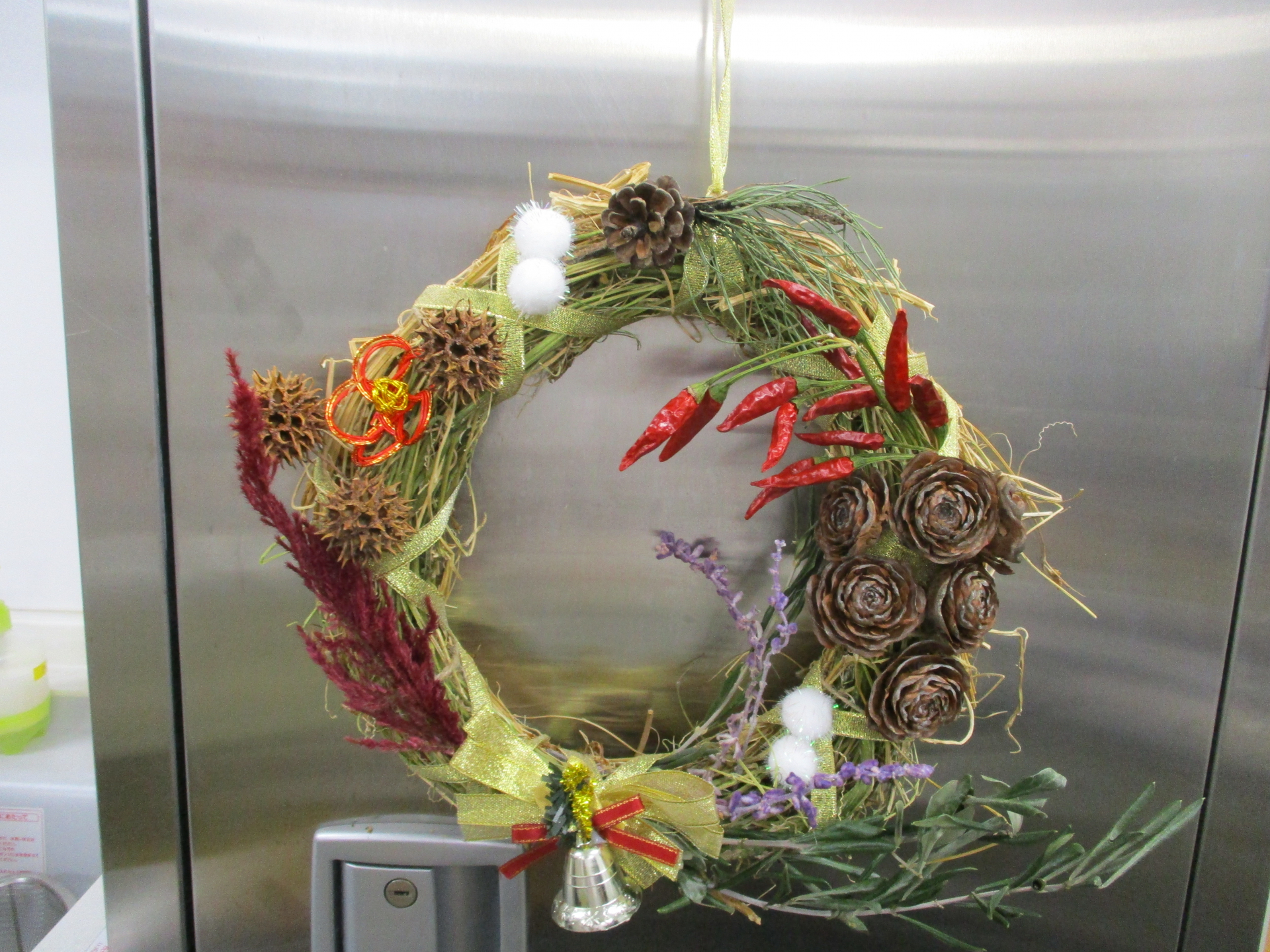 素敵なリースを作ってくださり、只今館の入口に飾られています。