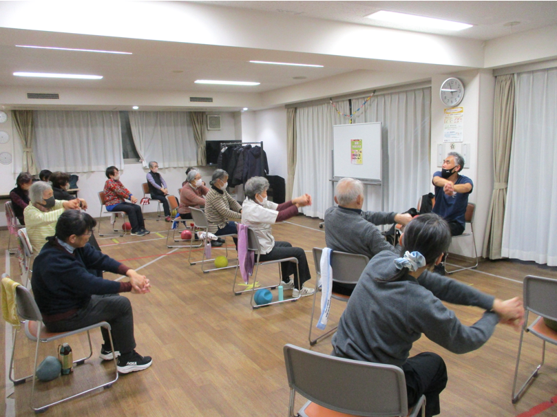 みんなで明るく元気に体を動かします。