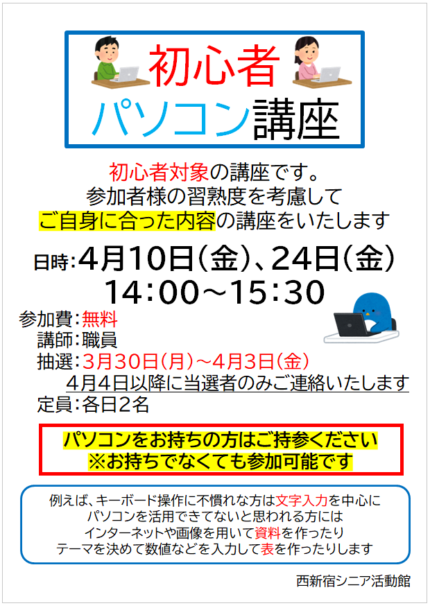 少しでもパソコンにご興味のある方は、お気軽にご参加ください!